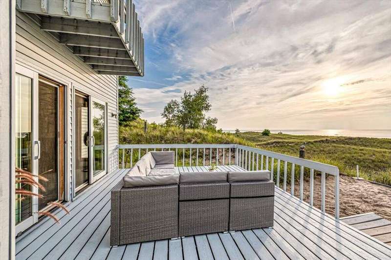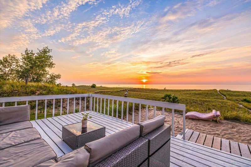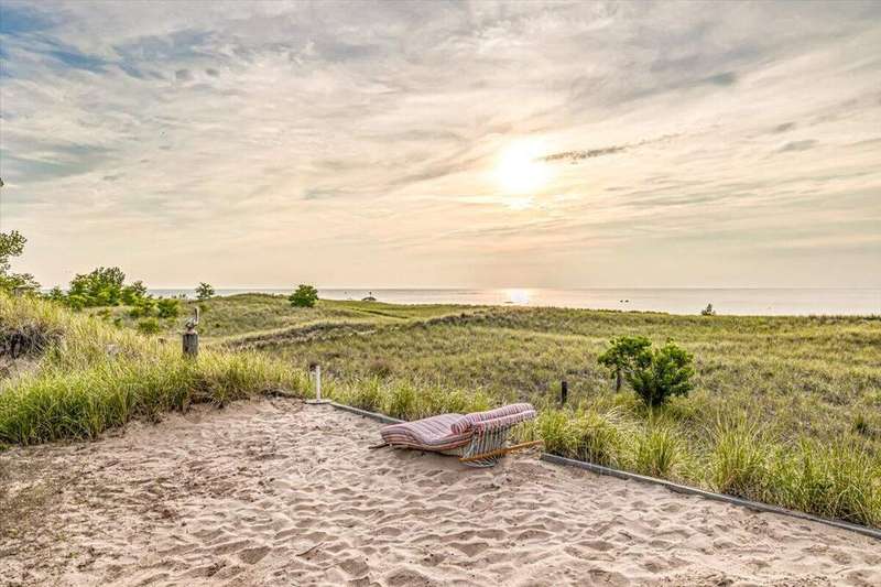 Located on the southwest end of Wolverine Beach, this rare Lake Michigan property offers over a quarter mile of private beachfront and stunning, unobstructed sunset views. With just under 40 owners, Wolverine Beach is one of the lake's most exclusive communities. The 110' x 165' lot provides ample space to renovate or build your dream home. Unlike many lakefront lots, it's not designated as a critical dune or high-risk erosion area, giving you greater building flexibility. Enjoy privacy, natural beauty, and direct beach access in one of Lake Michigan's most desirable settings.
