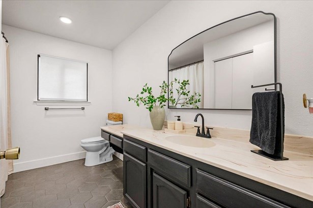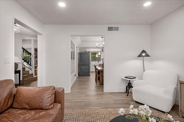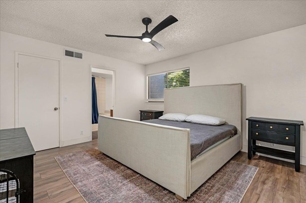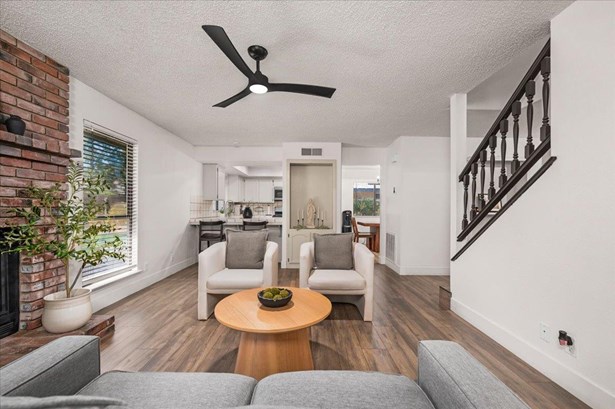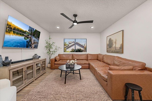 Charming 3-Bedroom Home with Solar in Clovis Unified School District!Welcome to this well-maintained 3-bedroom, 2-bath home nestled in an established, tree-lined neighborhood within the highly sought-after Clovis Unified School District. Upon entering, you will notice the newly installed wood plank porcelain tile that guides you through the entry, formal living space, dining/kitchen area and den. A well thought-out design perfect for everyday living or for those who enjoy entertaining! This inviting property features a private upstairs main suite, offering a peaceful retreat separate from the main living areas. Solar helps keep energy costs down, while the mature landscaping and fenced backyard add to the home's charm and usability. A perfect blend of comfort, convenience, and location - don't miss this opportunity!