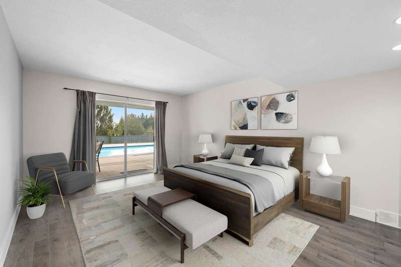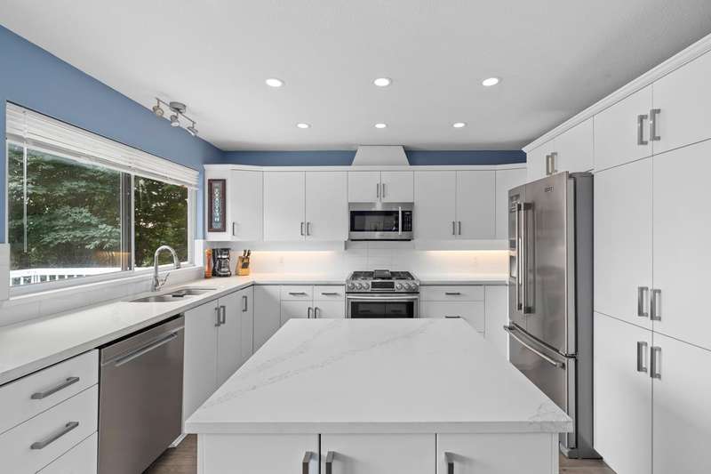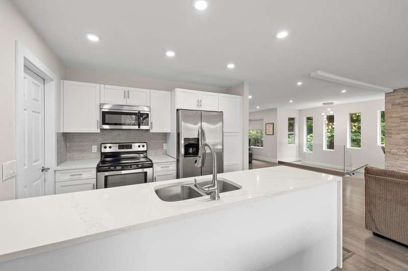 Renovated 4425 SF multi-generation home perfect for extended family. The 4 bed/3.5 bath main house features a formal living room, large kitchen, dining and family room leading to the generous South facing deck giving you access to the fully fenced yard, 3 beds upstairs featuring a primary bedroom with built in closets + ensuite bath, lower level features 1 bed,1 bath, workshop/storage and rec room next to the pool/patio. 2nd side of the house features 2 bed/1 bath, kitchen, dining, living room, family room with fireplace, 2 beds and 1 bath + Flex room all situated on 2 levels. Other features include an inground pool, fully fenced yard, triple garage with lots of exterior parking for all the toys.Next to the biking trails, 5 golf courses, 5 mins to the Pitt lake and 10 min to shopping.
