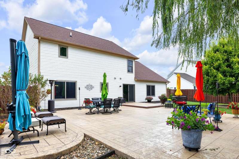 Welcome to 4443 W Windsong Ct - Where Comfort Meets Quality in New Palestine! Tucked away on a quiet cul-de-sac in the desirable New Palestine school district, this beautifully cared-for 4-bedroom, 2.5-bath home combines timeless style with thoughtful updates and exceptional functionality. From the moment you step onto the charming covered front porch, you'll feel the warmth and pride of ownership. Inside, a bright two-story entryway with soaring ceilings welcomes you, setting the tone for the spacious layout ahead. The home offers two separate living areas, a private office space, and a well-designed flow that's perfect for both everyday living and entertaining. Fresh interior paint throughout (2025) and new windows (2023) give the home a clean, modern touch, while natural light floods every room. The spacious primary suite features vaulted ceilings, a large walk-in closet, and a peaceful atmosphere ideal for relaxation. This home has been meticulously maintained and boasts a long list of updates, including updated appliances, 4 year old roof, and newly installed & maintained mechanicals. The freshly painted garage walls (2025) & epoxy-coated garage floor (2025) adds a sleek, durable finish that car enthusiasts and organizers alike will appreciate. Step outside into your own private retreat! The fully fenced backyard is beautifully landscaped, professionally maintained and features an oversized custom concrete patio, a concrete walkway that wraps around the home, and a walk-in storage shed-all designed with convenience and outdoor living in mind. Don't miss your chance to own this move-in ready gem in one of the most sought-after communities in New Palestine. Schedule your private tour today and experience the comfort, space, and quality that 4443 W Windsong Ct has to offer! *See supplements for full list of Updates & Features!*