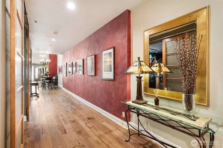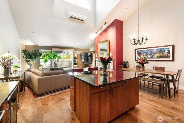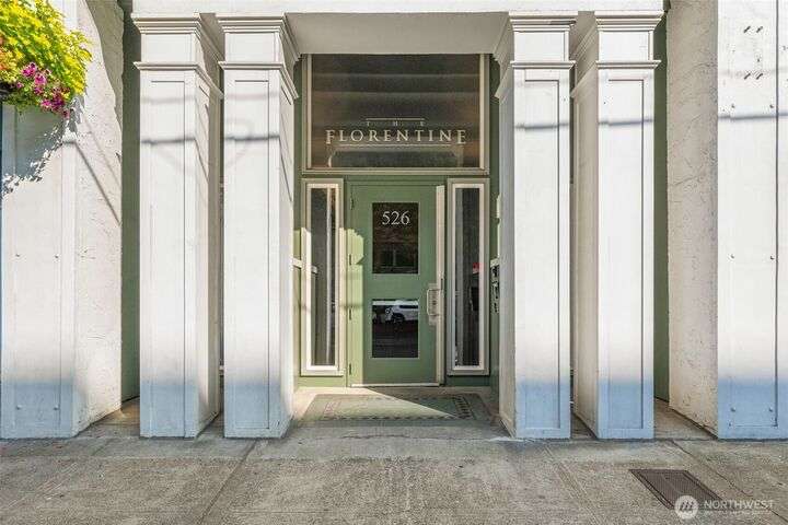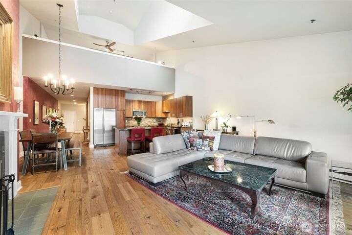 Welcome to this fabulous top-floor loft-style condo in The Florentine, the heart of Pioneer Square! Updated 2 bed/2 bath unit offers flexibility with one bedroom easily serving as an office or den. Chef’s kitchen with newer SS appliances, induction cooktop, and wine fridge, open layout to spacious living with soaring ceilings, gleaming hardwoods and a cozy wood-burning fireplace. Upstairs, the primary suite includes a full bath, walk-in closet, flex/office space, and laundry. Step onto your private rooftop terrace with city and stadium views! Two secure parking spaces seal the deal! With art galleries, acclaimed dining, shops, and the new Seattle waterfront just outside your door, this home perfectly blends modern comfort with urban living.