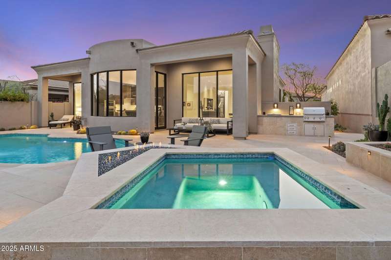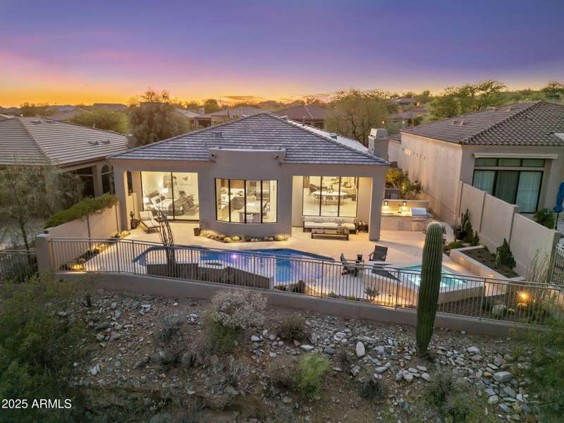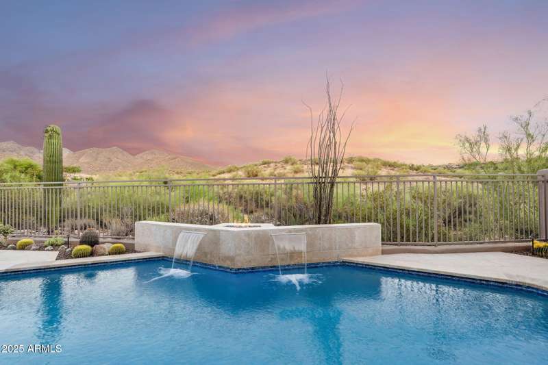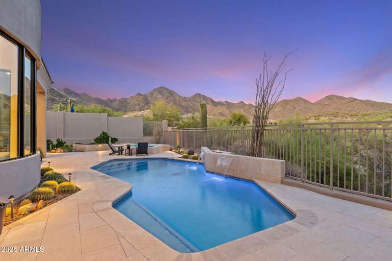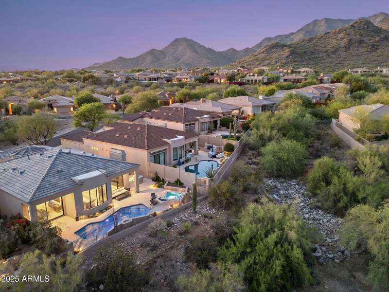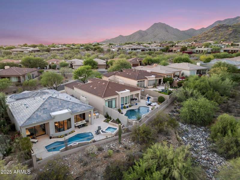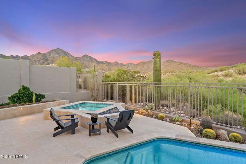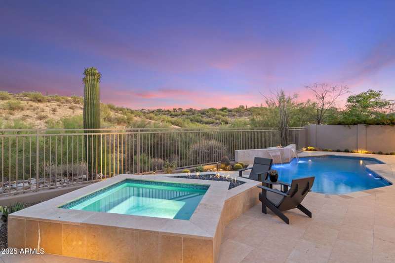 Experience this spectacular remodel in guard-gated 100 Hills at McDowell Mountain Ranch, where striking style meets modern luxury. A contemporary pivot door sets the tone at entry, leading into a private retreat framed by breathtaking city light and mountain views—perfect for poolside entertaining. The expansive 3-bed + den, 3.5-bath layout includes a guest casita, chef's kitchen, spa-like primary bath, built-ins, and hardwood flooring throughout. Highlights: Savant smart shading/lighting, new LED lighting, & Western windows throughout. New roof, driveway, garage floors, landscape irrigation, and Pentair pool/spa system. Enjoy a 72'' stone fireplace indoors, and firepit, kitchen w/ Artisan grill, cooler, drawers, and oversized island outdoors. All designed for ultimate AZ living. Nestled within the picturesque McDowell Mountain Ranch, One Hundred Hills is a prestigious 24-hour guard-gated community offering a mix of semi-custom and custom homes. Residents enjoy breathtaking mountain and city light views in an enclave defined by luxury, privacy, and elegance. Developed by Geoffrey H. Edmunds (now Toll Brothers, Inc.), the community consists of 216 homes across three distinct neighborhoods: The Villas, The Terraces, and The Retreat. Homes are thoughtfully grouped by size and price. The Retreat, with just 111 homes, including several custom lots, offers a tranquil and private setting ideal for discerning homeowners. Exclusive amenities for residents include a heated pool, spa, ramada, and tennis courts. In addition to all the amenities behind the gates of One Hundred Hills, residents can also enjoy everything MMR has to offer! Award-winning McDowell Mountain Ranch is a premier master-planned community located in North Scottsdale. Situated at the foothills of the McDowell Mountains, enjoy the beautiful desert serenity yet also have all the conveniences of living "in-town" just outside the neighborhood. The 101 Freeway is 5 minutes away, as well as restaurants, shopping, groceries, and so much more! This friendly neighborhood features 2 heated community pools/spas, playgrounds, basketball courts, tennis courts, and one of the best Pickleball leagues in town! The HOA hosts several events throughout the year for everyone to enjoy and connect with neighbors. Numerous trails, both paved & unpaved, that meander throughout the community. McDowell Mountain Golf Club, designed by Phil Mickelson, with the clubhouse & restaurant, is a 2-minute drive and is open to the public. The City of Scottsdale Aquatic Center w/Lazy River & Library is close by, in addition to miles and miles of hiking, biking & equestrian trails at the landmark Gateway to the McDowell Sonoran Preserve trailhead.