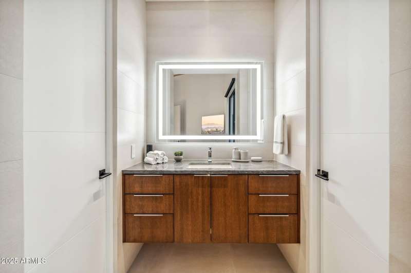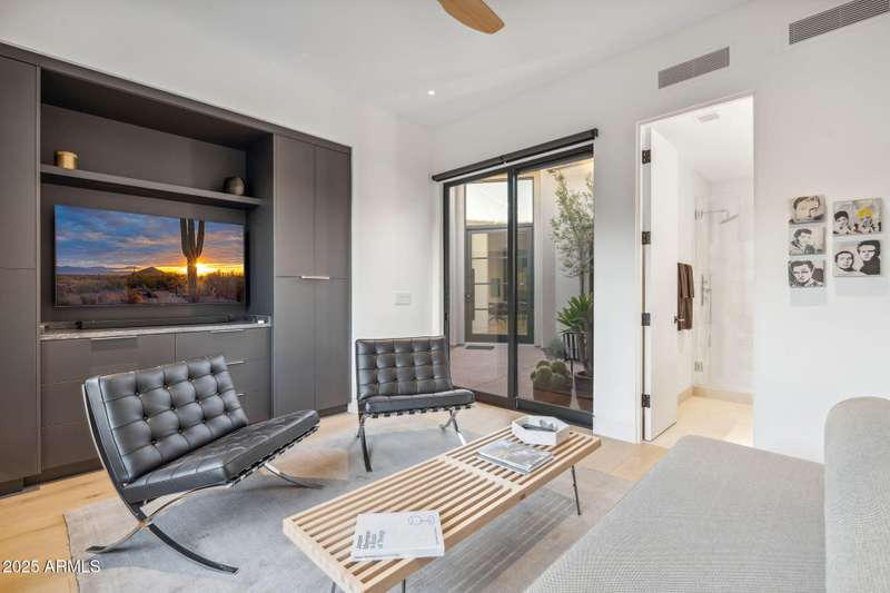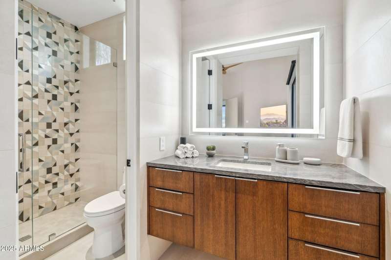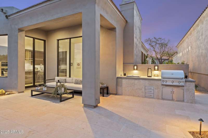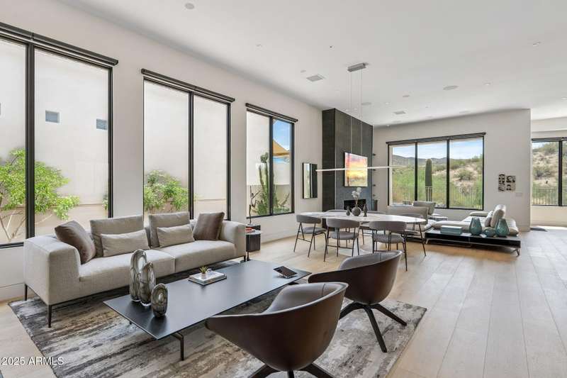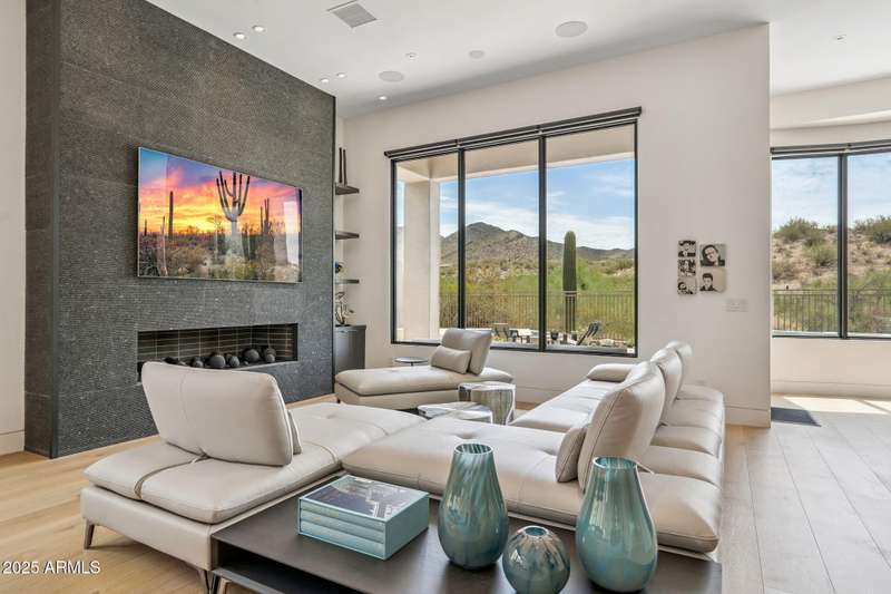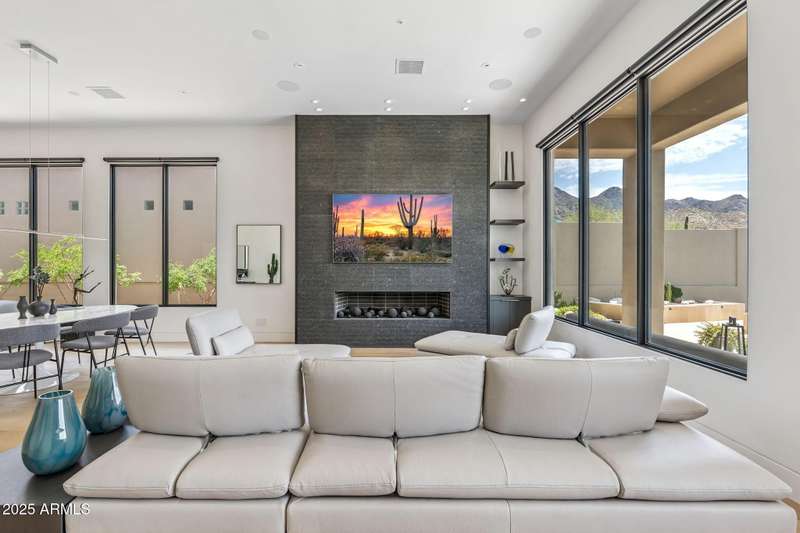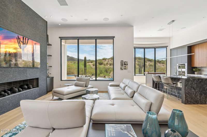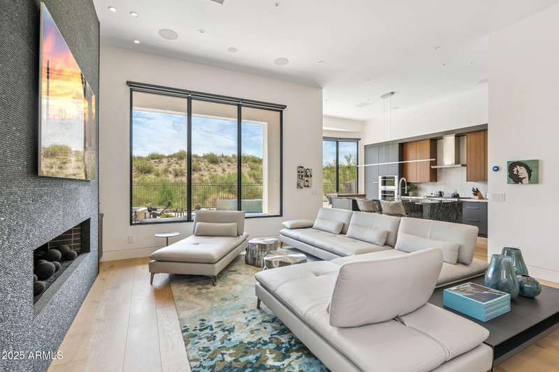 Experience this spectacular remodel in guard-gated 100 Hills at McDowell Mountain Ranch, where striking style meets modern luxury. A contemporary pivot door sets the tone at entry, leading into a private retreat framed by breathtaking city light and mountain views—perfect for poolside entertaining. The expansive 3-bed + den, 3.5-bath layout includes a guest casita, chef's kitchen, spa-like primary bath, built-ins, and hardwood flooring throughout. Highlights: Savant smart shading/lighting, new LED lighting, & Western windows throughout. New roof, driveway, garage floors, landscape irrigation, and Pentair pool/spa system. Enjoy a 72'' stone fireplace indoors, and firepit, kitchen w/ Artisan grill, cooler, drawers, and oversized island outdoors. All designed for ultimate AZ living. Nestled within the picturesque McDowell Mountain Ranch, One Hundred Hills is a prestigious 24-hour guard-gated community offering a mix of semi-custom and custom homes. Residents enjoy breathtaking mountain and city light views in an enclave defined by luxury, privacy, and elegance. Developed by Geoffrey H. Edmunds (now Toll Brothers, Inc.), the community consists of 216 homes across three distinct neighborhoods: The Villas, The Terraces, and The Retreat. Homes are thoughtfully grouped by size and price. The Retreat, with just 111 homes, including several custom lots, offers a tranquil and private setting ideal for discerning homeowners. Exclusive amenities for residents include a heated pool, spa, ramada, and tennis courts. In addition to all the amenities behind the gates of One Hundred Hills, residents can also enjoy everything MMR has to offer! Award-winning McDowell Mountain Ranch is a premier master-planned community located in North Scottsdale. Situated at the foothills of the McDowell Mountains, enjoy the beautiful desert serenity yet also have all the conveniences of living "in-town" just outside the neighborhood. The 101 Freeway is 5 minutes away, as well as restaurants, shopping, groceries, and so much more! This friendly neighborhood features 2 heated community pools/spas, playgrounds, basketball courts, tennis courts, and one of the best Pickleball leagues in town! The HOA hosts several events throughout the year for everyone to enjoy and connect with neighbors. Numerous trails, both paved & unpaved, that meander throughout the community. McDowell Mountain Golf Club, designed by Phil Mickelson, with the clubhouse & restaurant, is a 2-minute drive and is open to the public. The City of Scottsdale Aquatic Center w/Lazy River & Library is close by, in addition to miles and miles of hiking, biking & equestrian trails at the landmark Gateway to the McDowell Sonoran Preserve trailhead.