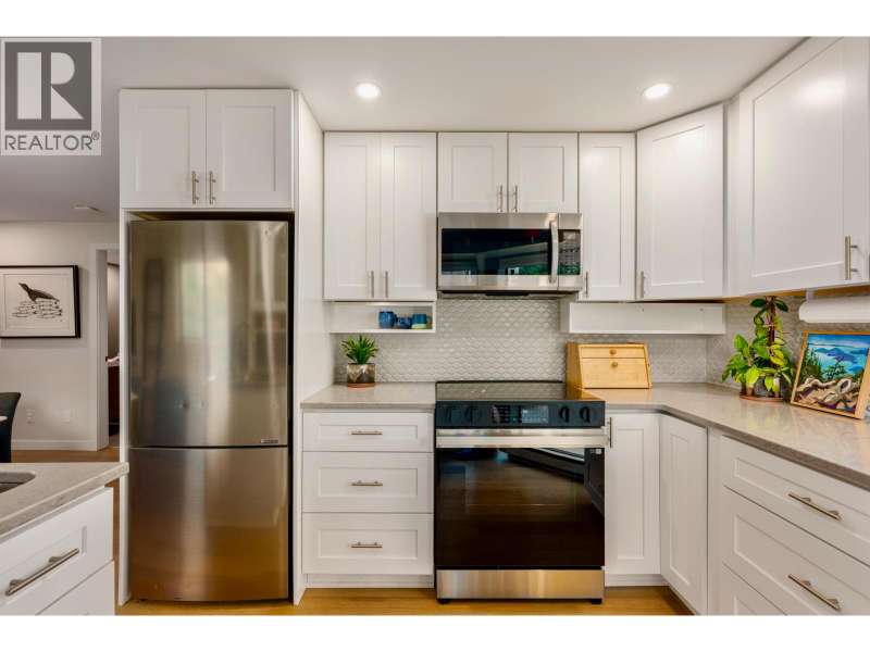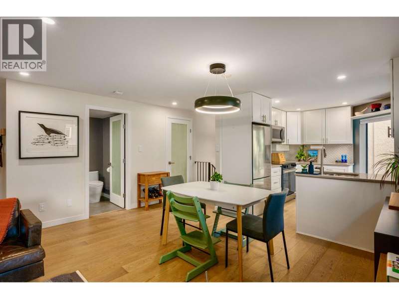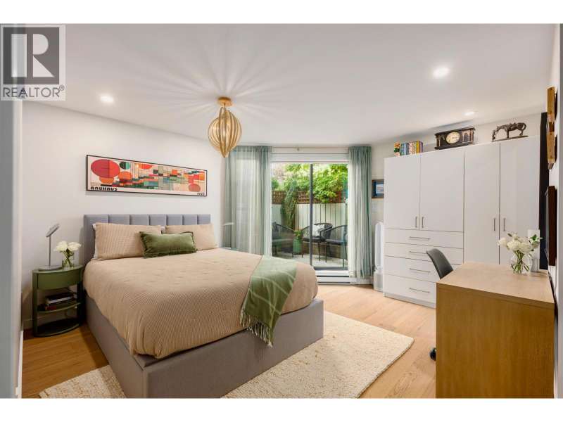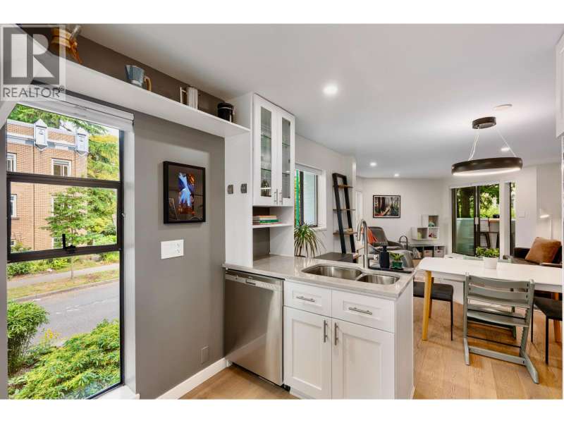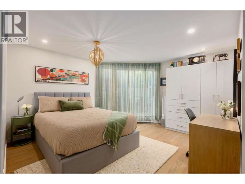 A beautiful and bright 3-Bedroom corner townhome in the West End. Two outdoor spaces! A warm west coast vibe, with upgraded HW throughout, full bathroom reno's, quartz finishes, SS appliances, fresh paint, pot lights, smart lights/thermostat, and generous in suite plus built-in storage. Dedicated laundry room; Lg.windows on 3 sides. Custom blackout blinds support quality sleep. Retreat to the upper balcony or lower patio off the primary bdrm. Welcome friends into your private entrance. Traffic calmed, tree-lined Bute and Barclay streets with independent grocers and coffee a short hop away. Stroll to work, Denman, Robson, and cycle Stanley Park! This immaculately kept TH with custom touches invites the next discerning professional couple or young family. (id:58403)