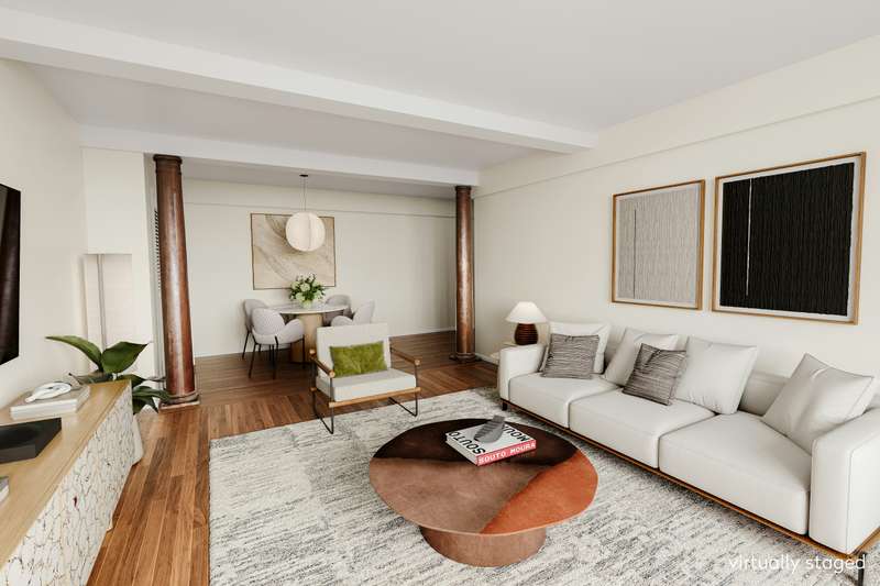 Enter through a foyer that leads to a south facing living and dining area. The focal point of this room is a handsome decorative fireplace. The living room has a though wall air conditioning and heating unit. Two columns separate it from an additional living space.