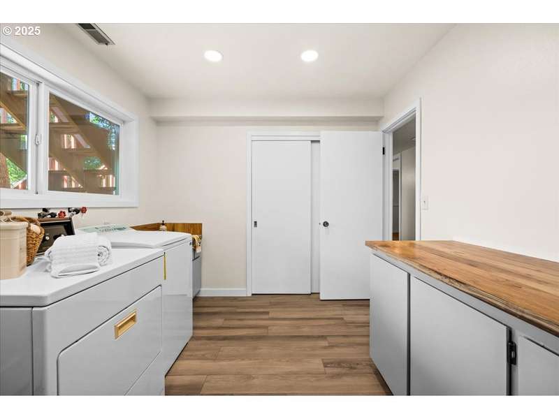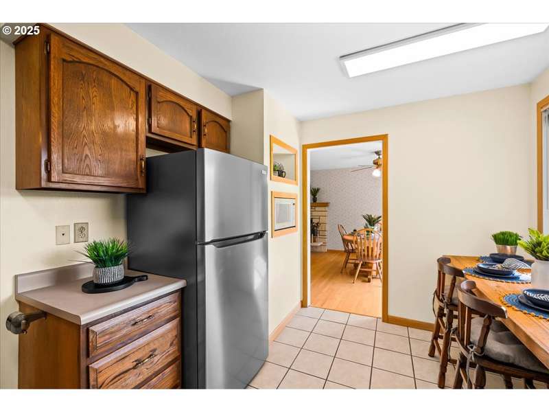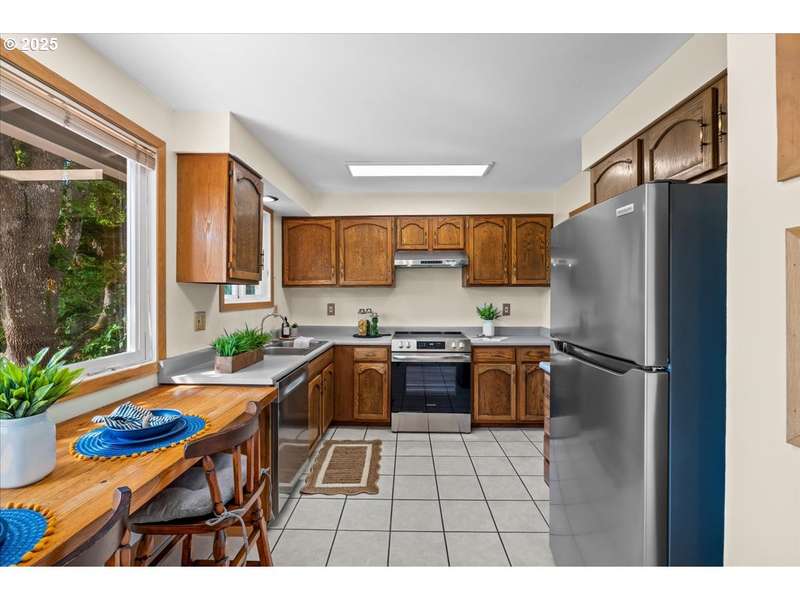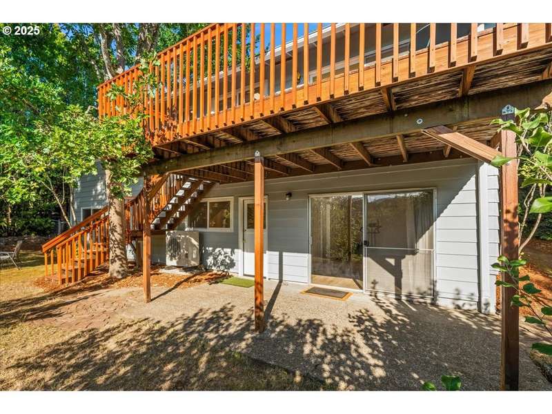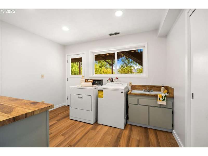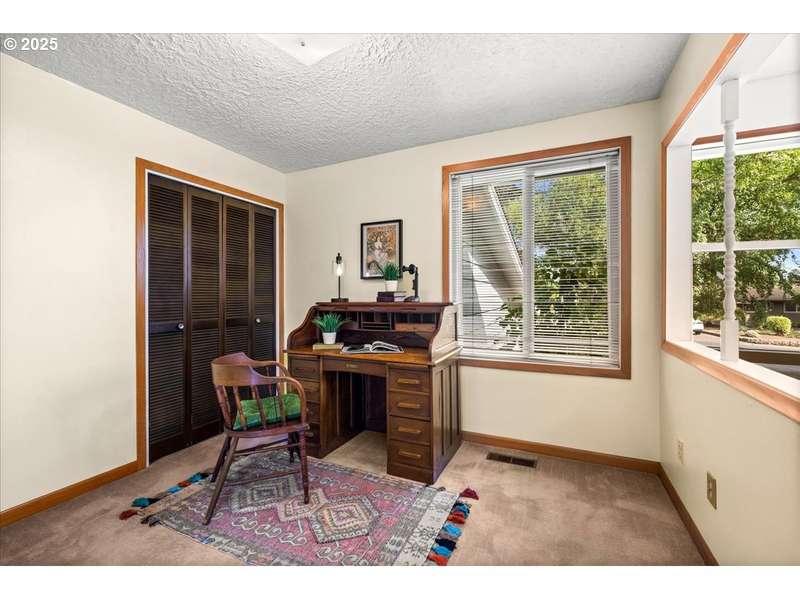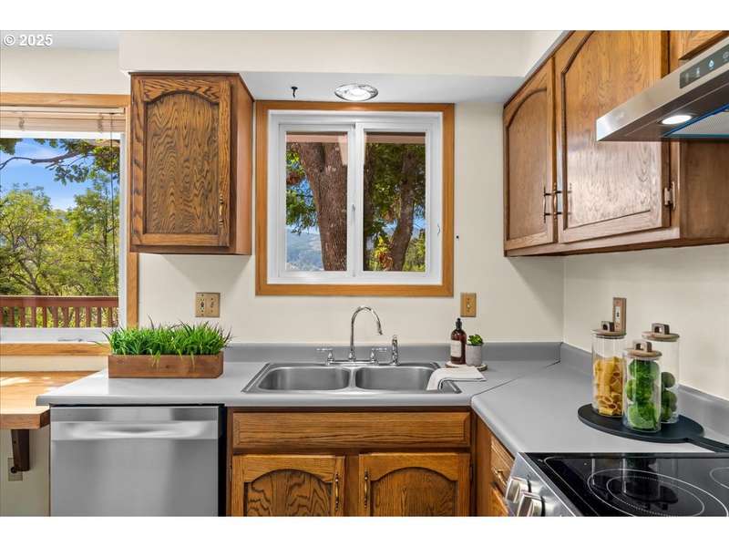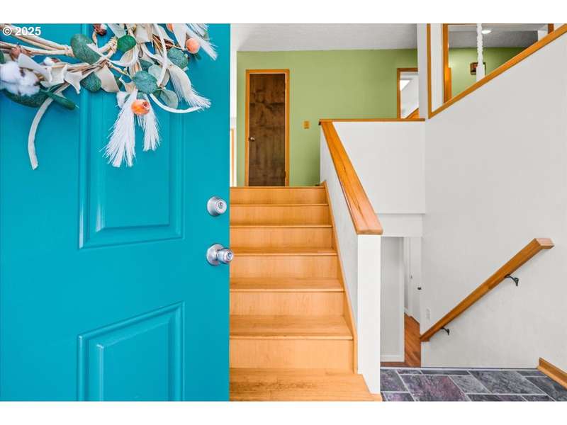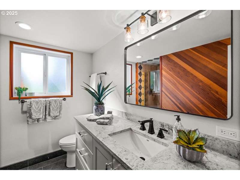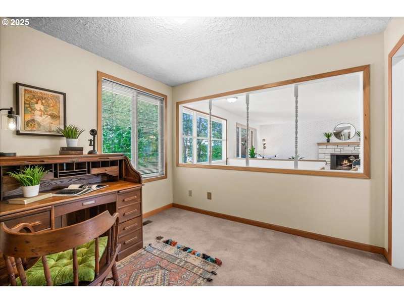 Classic Mid-Century Vibes in this Modern home with sweeping Coastal Range views! Step inside and you’ll find the main living spaces upstairs, designed to capture natural light and frame unobstructed views from every window. The living room, dining area, and kitchen flow seamlessly together, opening onto a deck that offers dramatic seasonal views — glorious sunsets, clouds and mist drifting over the hills, and blankets of snow against a backdrop of forest and farmland. Perfect for everyday living or hosting a full dinner party. Upstairs, the den is your blank canvas: create an office, a cozy reading nook, or a craft room — the choice is yours. Downstairs, the bonus room offers flexible living space with a brick fireplace, perfect for a cozy lounge or the ultimate game-day hangout. Two additional bedrooms and a fully remodeled bathroom make it ideal for family, guests, or a private retreat. The laundry/utility room adds function with generous storage, direct backyard access, and a separate workshop space. Out back, your private 1/3-acre yard is lush, peaceful, and alive with wildlife — a natural landscape that blends the region’s beauty with today’s lifestyle. The location feels like you are not in town, yet the well-kept neighborhood is welcoming, with a park with walking paths that sits directly behind the house. This home blends modern updates with original character to create a truly one-of-a-kind retreat.