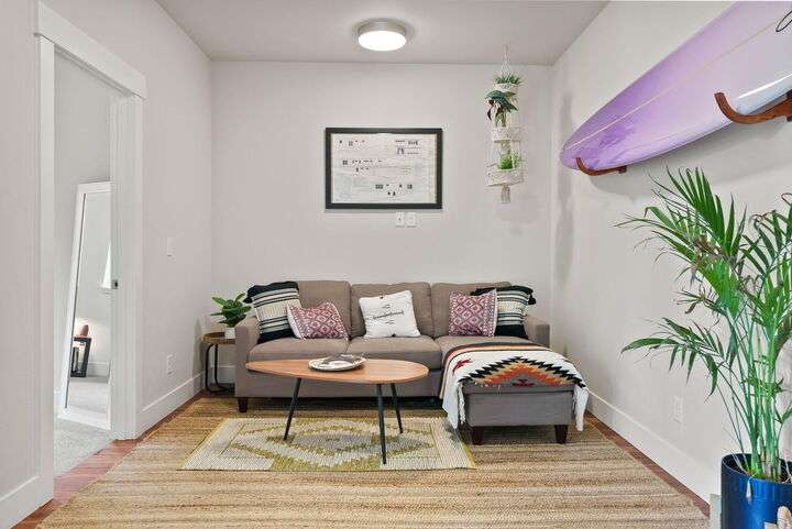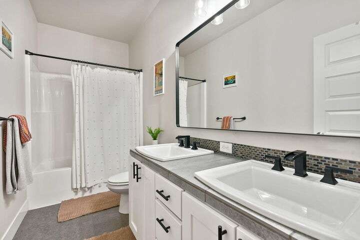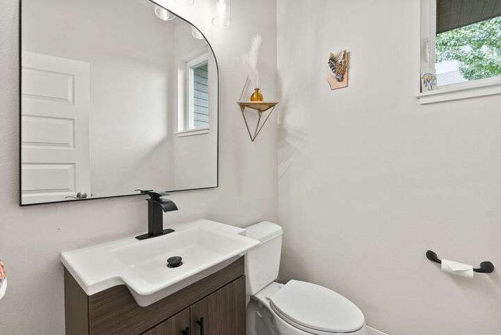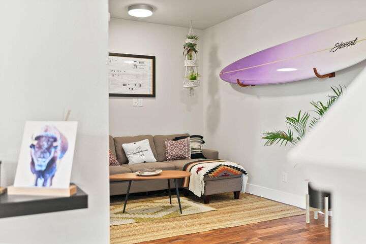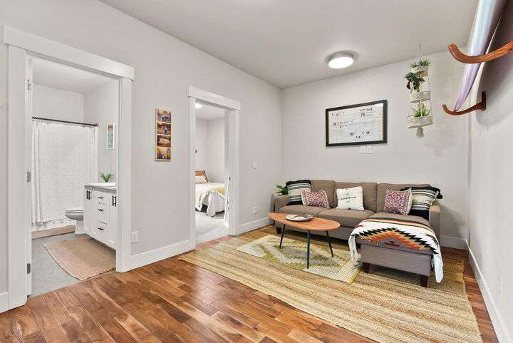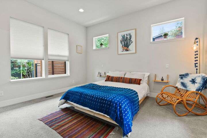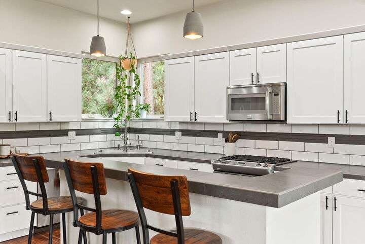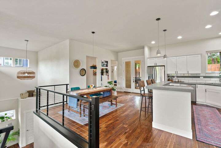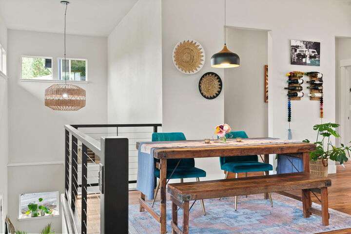 Welcome to The Treetop Oasis—a contemporary custom home in one of NW Bend's most coveted neighborhoods. This reverse-living home on a large lot captures sweeping treetop views from its elevated deck, the perfect backdrop for sipping your morning coffee. Inside, acacia hardwoods and a floor-to-ceiling fireplace with built-ins create a cozy gathering space, while updated fixtures + hardware pair w/ custom cellular shades for effortless style + privacy. The flat backyard boasts a greenhouse, firepit, and low-maintenance turf—ideal for gardening, entertaining + cornhole tournaments. A heated driveway eliminates winter shoveling and lofted garage storage keeps your gear organized. All tucked in a quiet, tight-knit neighborhood (turnover is so rare!) with an easy stroll to Quail Park and 6 minute drive to NWX's restaurants + shops. From afternoons at the pickleball court to accidental dinner parties on the patio, The Treetop Oasis is the place you'll always be happy to come home to.