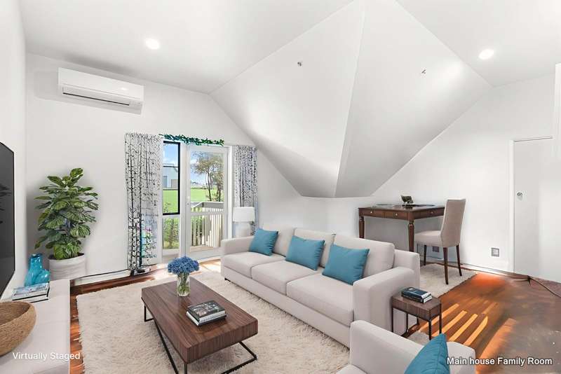 Set in a prime Greenhithe location and directly across from the lush green spaces of Wainoni Park and the Greenhithe Pony Club, this substantial brick and tile property offers a unique opportunity for those seeking space, flexibility, and future potential. Whether you’re looking to accommodate extended family, generate dual income, or add your personal touch through renovation, this home presents endless possibilities. The MAIN HOUSE features four generously sized bedrooms plus a study, providing ample room for a large or growing family. A well-appointed kitchen connects seamlessly to the dining area, while two separate living rooms offer flexibility for both formal and informal living. The layout is thoughtfully designed to allow everyone their own space while still feeling connected. With a family bathroom, an ensuite in the master bedroom, and a double internal-access garage, the home is practical, comfortable, and ready for a makeover to modern standards. Step outside to a sunny and private backyard — an ideal space for children to play or for hosting relaxed summer barbecues. What makes this property truly special is the fully self-contained, LEGAL MINOR UNIT, complete with its own separate entrance. It features one bedroom, a modern kitchen and bathroom, and its own living area and single internal-access garage. There is a large family room on the second level with its own bathroom (could be used as a second bedroom). This space is perfect for elderly parents, young adults seeking independence, guests, or additional income opportunities. Set in a peaceful, family-friendly neighbourhood, the home enjoys the tranquil charm of Greenhithe village while remaining close to key transport links and top local schools. The community here is vibrant and welcoming, with an abundance of recreational activities right at your doorstep. This is a home with great bones and even greater potential. Solidly built and generously proportioned, it is ready for new owners to modernise and make it their own. All the interior photos are VIRTUALLY STAGED!