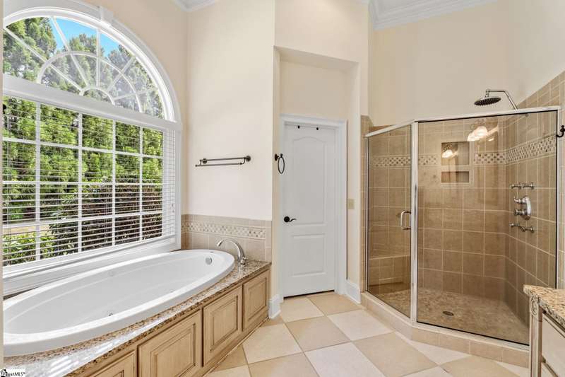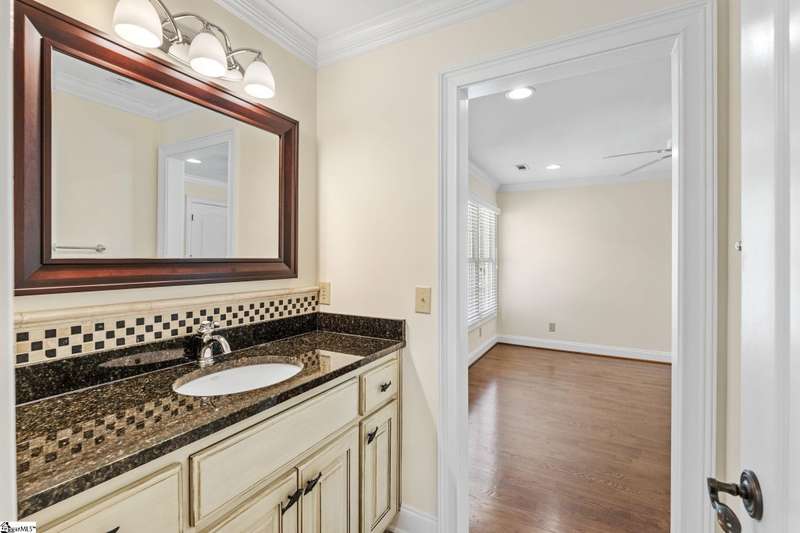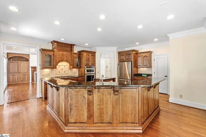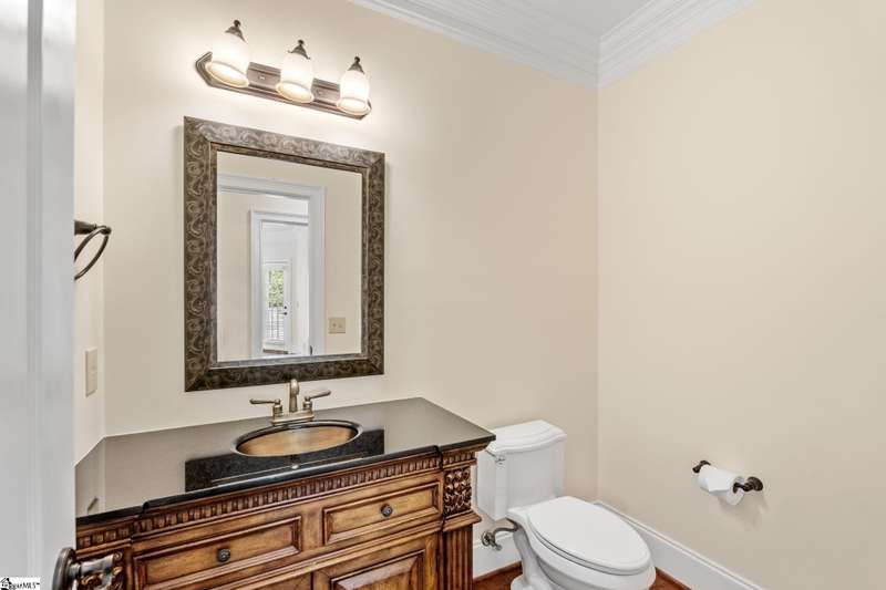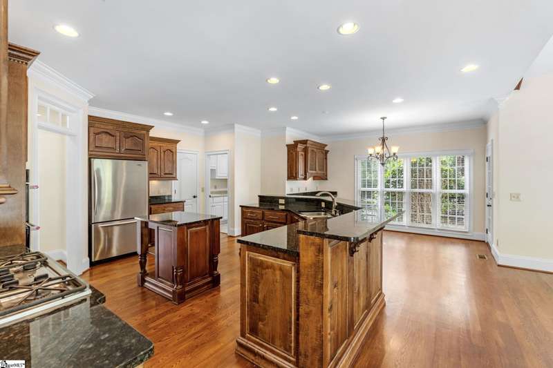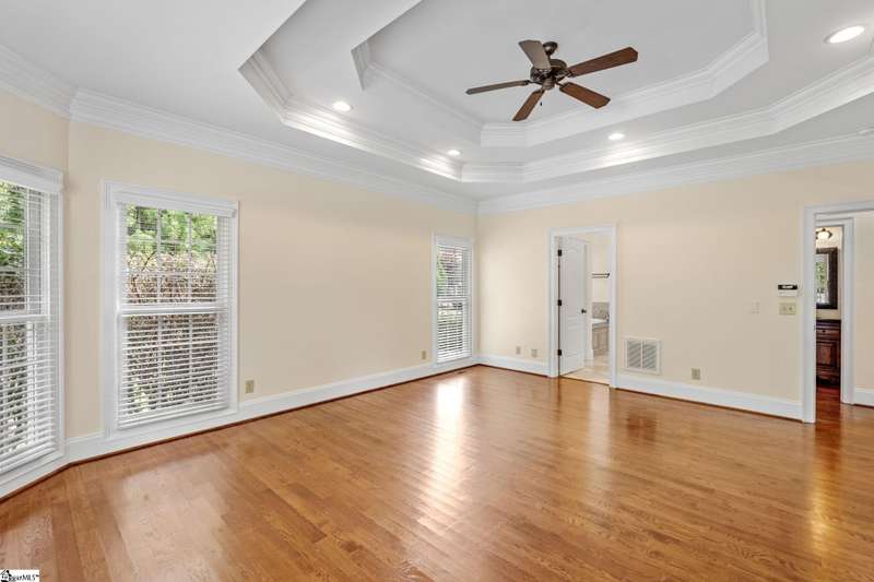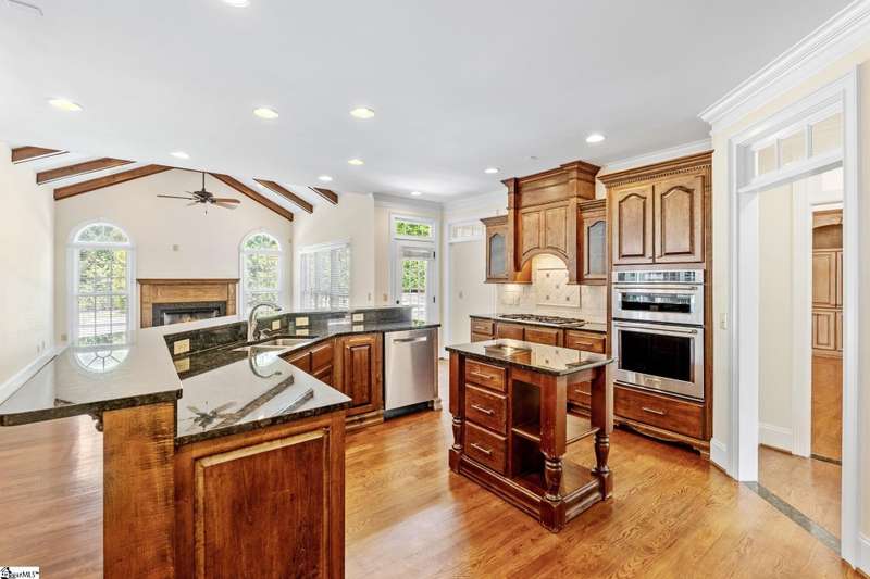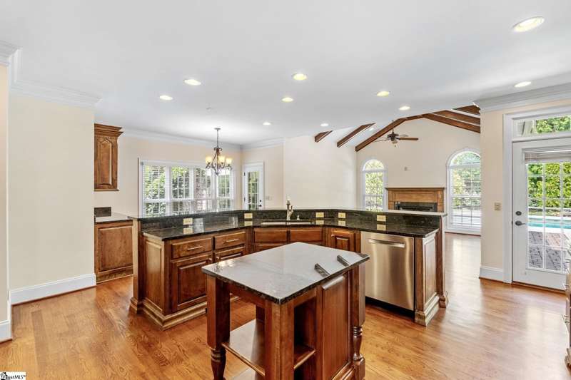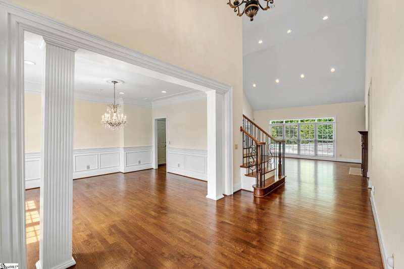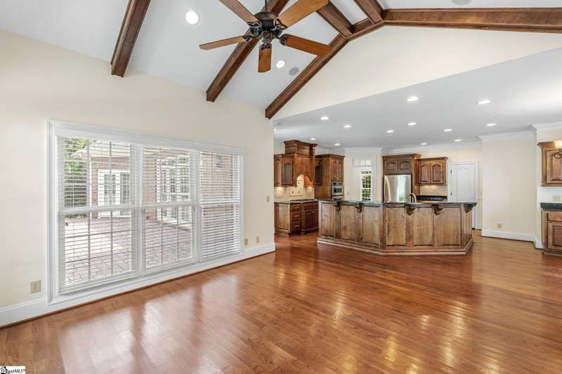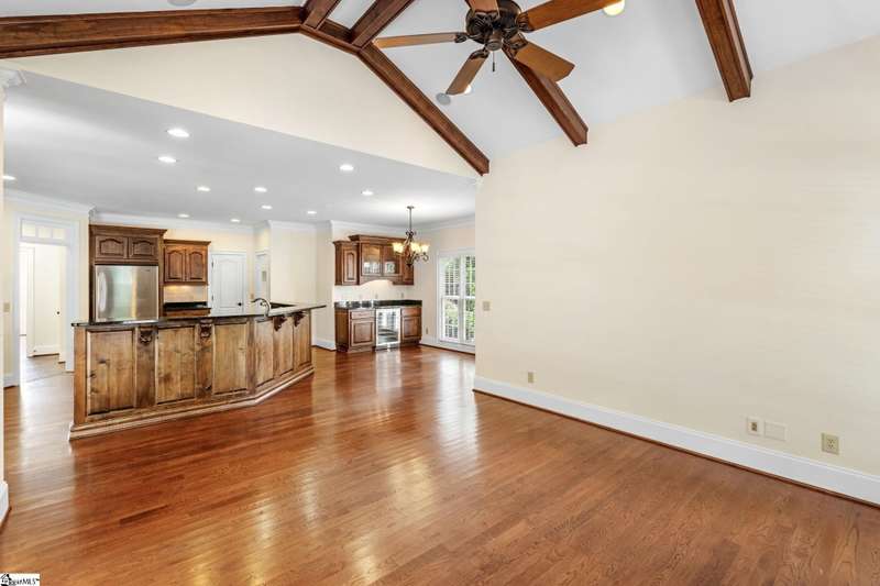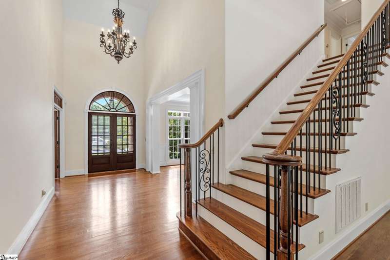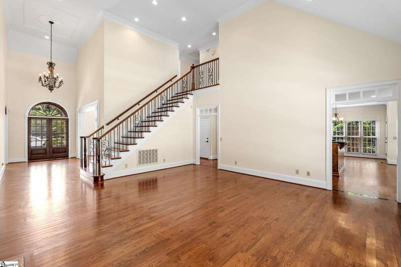 This home is offered by Blair Miller with Wilson Associates. Please contact Blair at 864.430.7708 or blair@wilsonassociates.net Welcome to this beautiful, traditional home situated in the lovely Kingsbridge subdivision in the Five Forks area. This homes interior walls were just completely repainted with a lovely, neutral color and features four bedrooms and three and a half bathrooms - and boasts wonderful, spacious rooms throughout. The main level showcases gorgeous hardwood flooring throughout and a two-story foyer that sets the tone for the home’s open and inviting layout. The primary suite is located on the main level and includes double tray ceiling and a bathroom with dual sink vanity, a separate tub and shower, and plenty of space for a true retreat. Enjoy a lovely formal dining room as well as a living room ideal for entertaining complete with built in cabinetry, vaulted ceiling, ample light and a gas fireplace. This kitchen is a chefs dream with plenty of cabinetry and countertop space, separate breakfast area, and a lovely keeping area complete with gorgeous beams and vaulted ceiling as well as gas logs. Also, you will love having a wonderful sunroom off the back of the home. Fabulous walk-in laundry room complete with sink and refrigerator. Enjoy having a true dedicated office, with gorgeous, coffered ceiling and wainscoting and beautiful double glass doors. Upstairs, a large flex room provides endless possibilities as a playroom, media room, or additional home office. Additional bedrooms offer comfort and flexibility for family and guests. The fenced backyard is a true highlight with a stunning pool and spa, ideal for summer entertaining or relaxing at home. An attached three-car garage adds convenience and storage as well. This Kingsbridge property blends style, function, and location and comes with all the wonderful amenities that Kingsbridge has to offer. Don’t miss your chance to make it yours. Schedule your private tour today!