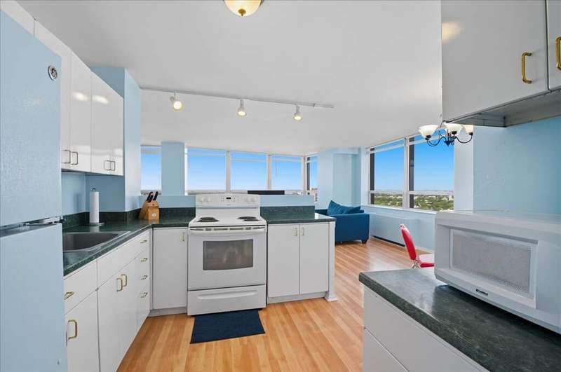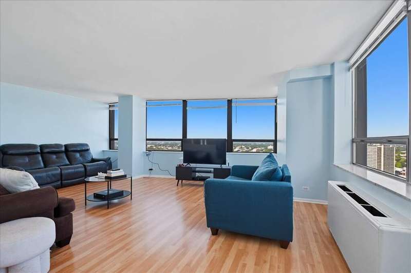 WOW! ENDLESS SUNSETS! SUPER NICE 1 bedroom residence with FABULOUS WEST CITY & NORTH LAKE VIEWS from this sun-drenched, NORTHWEST FACING, 950 sq ft SPACIOUS & QUIET 26TH floor condo at FABULOUS HOLLYWOOD TOWERS of EDGEWATER BEACH! Warm and inviting layout features LAMINATE FLOORING thoughout, open kitchen, roomy and airy with plenty of light, lots of work-from-home space & TONS OF CLOSETS. This unit could use some minor updating and is priced accordingly. What a great space in a great place! Hollywood Towers is a solid, extremely well run, full amenity building ON THE BEACH/bike path, with HEAT, A/C, CABLE TV and INTERNET INCLUDED IN LOW ASSESSMENTS of only $459 & NO RENTAL RESTRICTIONS! Sorry, no dogs. Indoor, heated valet parking is AVAILABLE AT $190/month. Express bus at door. 2 blocks to Red Line. Beach at back door! Close to Andersonville, Whole Foods, Marianos, shopping, restaurants, theater, Loyola U and everything fabulous Edgewater has to offer!