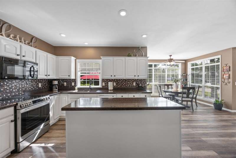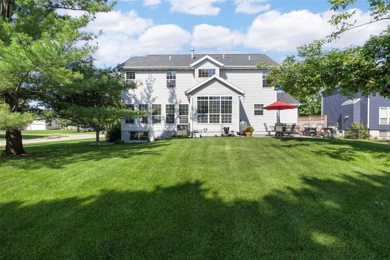 Welcome to this stunning two-story home nestled in a popular Linn Mar neighborhood! Boasting ample space and modern amenities, this home offers a comfortable and convenient lifestyle for you and your family. Upon entry, you'll be greeted by a spacious and inviting living area and formal dining room, perfect for hosting gatherings or simply relaxing after a long day. The living room features lots of natural light with the large windows and two sized cozy gas fireplace. The well-appointed kitchen features sleek countertops, white cabinets, beautiful backsplash and plenty of storage space, making meal preparation a breeze while enjoy the view of the two sided gas fireplace. The large kitchen island is great for hosting and entertaining get togethers with family and friends. Adjacent to the kitchen, you'll find a spacious dining area with large windows overlooking the backyard. This home offers four generously sized bedrooms, providing plenty of space for everyone to unwind and recharge. The large primary suite, located on the upper level, is a peaceful retreat complete with a luxurious ensuite bathroom featuring a shower, soaking tub, and 2 separate vanity. There are 3 other bedrooms located on the upper level along with another full bathroom. Convenience is key with main floor laundry, ensuring that chores are completed with ease. Additionally, the home features a main floor half bathroom ensuring that there's never a wait during busy mornings or evening routines. The lower level features a family room that is great for relaxing with a gas fireplace while watching movies, or watching your favorite game. The lower level features a large rec area big enough for pool table and half bathroom. Outdoor living is made easy with a spacious patio and room for a hot tub which provides the perfect setting for summer barbecues or enjoying your morning coffee in peace. The yard and mature trees and beautiful flower beds that have been meticulously well taken care of for easy maintenance including irrigation system. The three-car garage offers plenty of room for vehicles and storage space. With its desirable features and prime location, a new high efficiency furnace and air condition in 2023, new shingles in 2020, new hot water heater 2022 this home offers the perfect blend of comfort, style, and convenience. Don't miss out on the opportunity to make it yours and schedule your showing today!