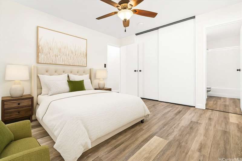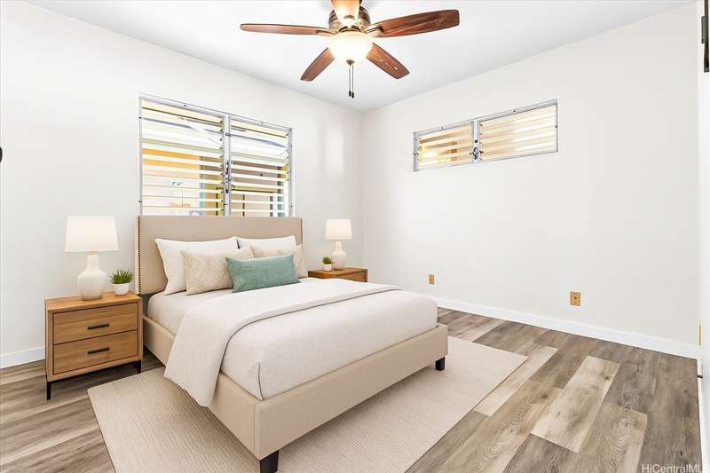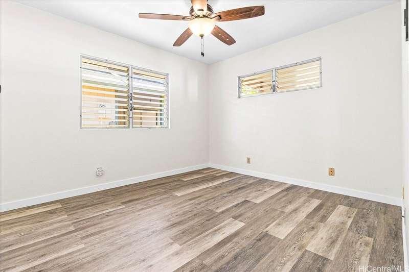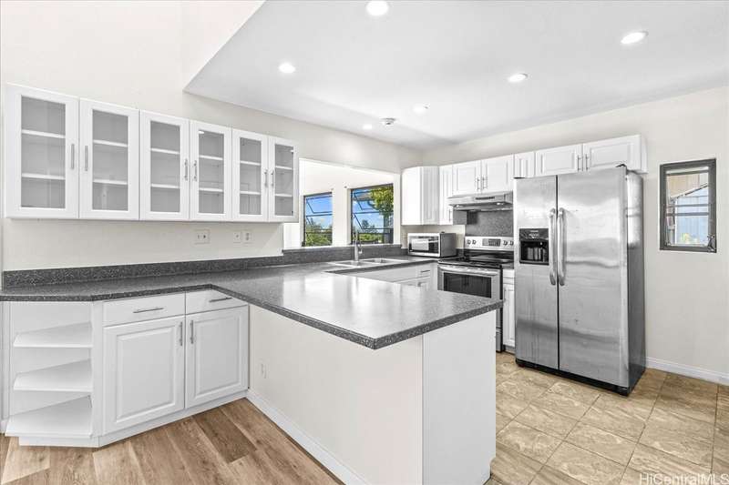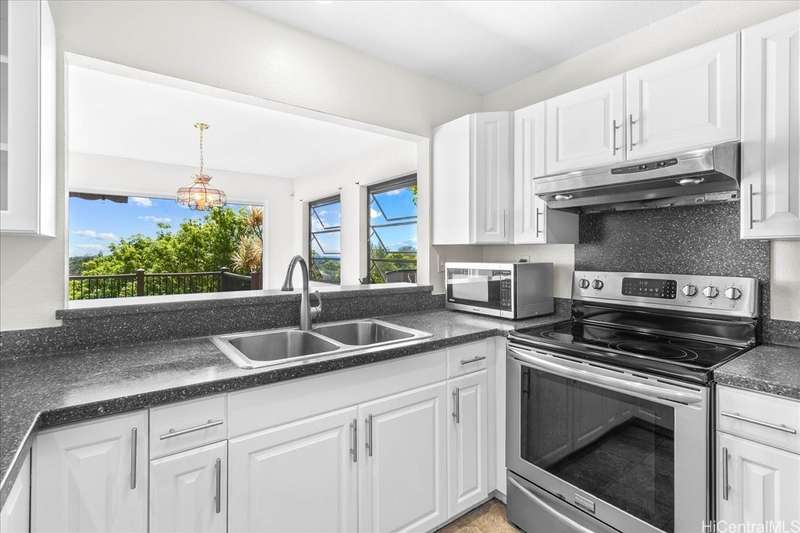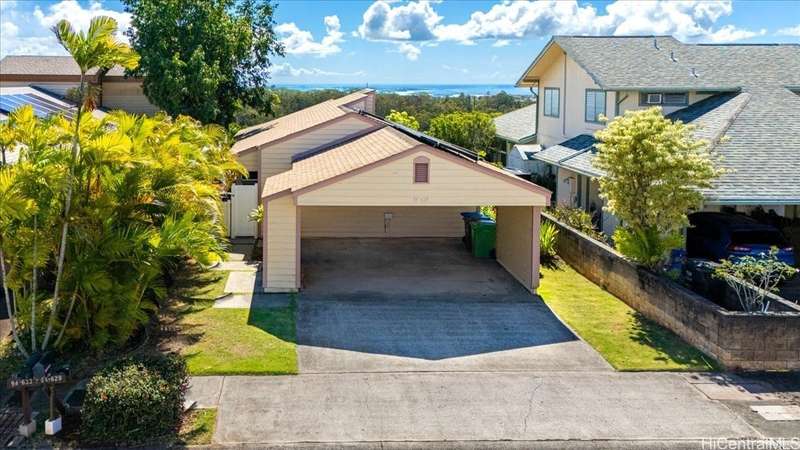 Welcome home to 94-629 Kuaie Street, a beautifully refreshed single-level residence tucked away on a quiet street in desirable Mililani Town. This 3-bedroom, 2-bathroom home sits on a rim lot that captures tranquil views, cool breezes, and a sense of privacy rarely found. Step inside to discover new paint and flooring throughout, creating a bright, move-in-ready space that feels both modern and inviting. Enjoy easy indoor-outdoor living with a spacious Trex deck perfect for relaxing or entertaining while taking in the lush surroundings. Practical upgrades include 12 owned PV panels to help keep energy costs low and a convenient carport for covered parking. As part of the Mililani Town Association, residents enjoy access to recreation centers, pools, parks, and community events-all in one of Central O'ahu's most established neighborhoods. Experience the best of island living-peaceful, breezy, and beautifully maintained. (Some photos have been virtually staged)