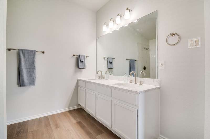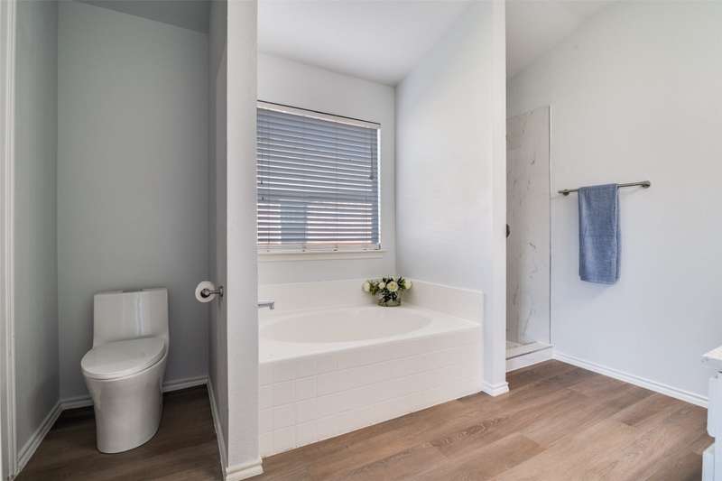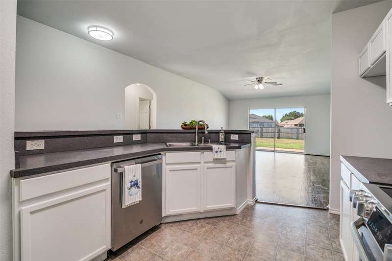 Welcome to this beautifully updated 3-bedroom, 2-bath, 1-story home in Forney, thoughtfully designed for both comfort and functionality. Inside, the open-concept layout features durable LVP flooring that extends seamlessly from the foyer through the living room and den, creating a warm and inviting atmosphere. The refreshed kitchen makes cooking and entertaining a joy, with freshly painted cabinets, updated lighting, and abundant storage space. The primary suite overlooks the backyard, filling the room with natural light, and the ensuite bath includes a new tiled shower, double sinks, a relaxing garden tub, and a generous walk-in closet. Two additional bedrooms provide plenty of room for family or guests, while the dedicated office can easily serve as a guest room, media space, or playroom. Additional highlights include a full-size laundry room, a 2-car garage, and a spacious backyard with patioideal for outdoor living and entertaining. Conveniently located just off Highway 80, this home offers quick access to shopping, dining, and schools, with downtown Dallas only a 30-minute drive away. Dont miss the chance to own this move-in ready Forney home with fresh updates, a versatile floor plan, and a prime location!