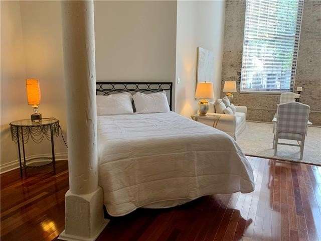 Gorgeous light-filled ground floor condo with an open floor plan. Comes completely furnished with all utilities and internet included. Unit has very high ceilings, exposed brick, large original windows and full size washer and dryer. All appliances and furnishings are fairly new. Has 24 hr security, a beautiful pool, a state-of-the-art fitness center, a huge courtyard with a party room/clubhouse, plus bike storage and a barbeque area. Building is well-maintained. Lease terms are negotiable. Parking is available for $175/mo.
