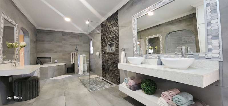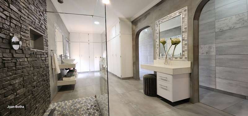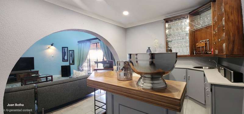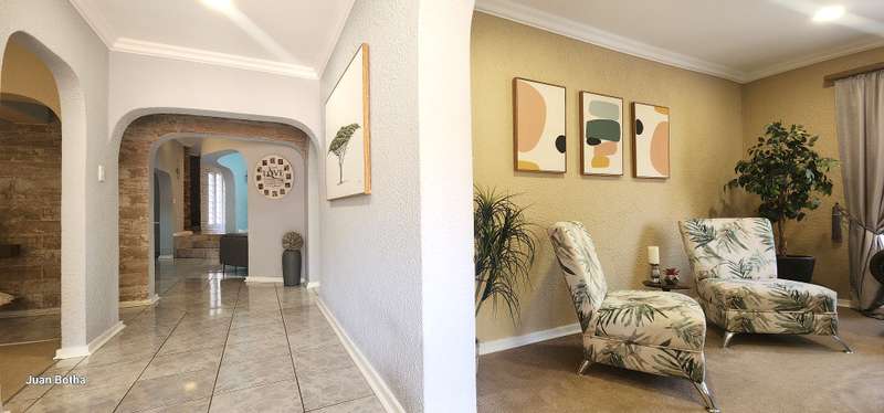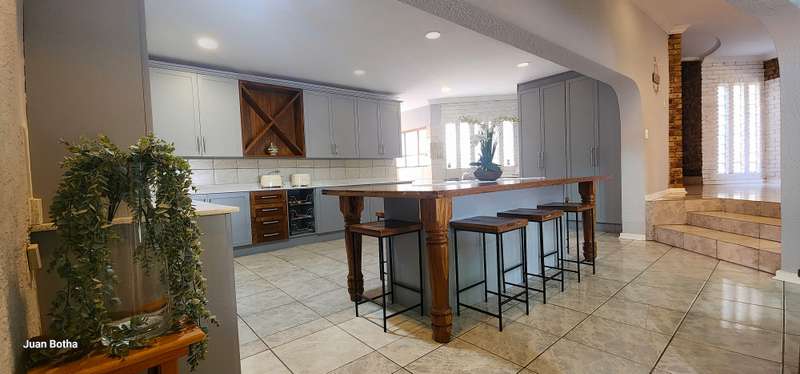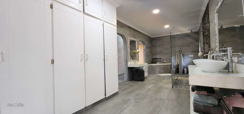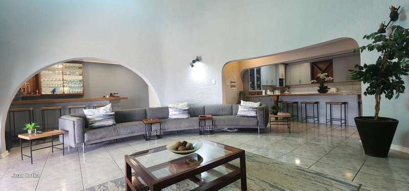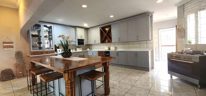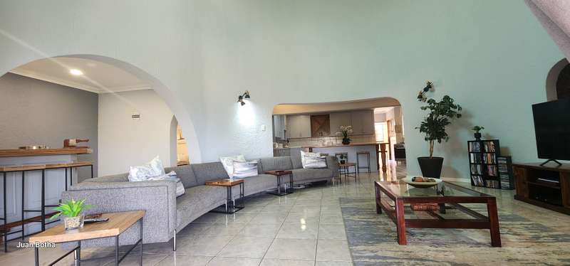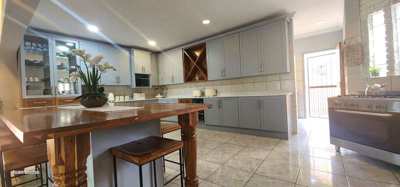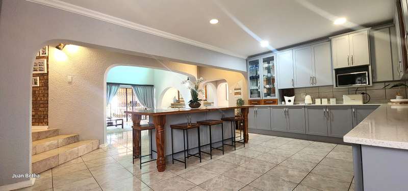 Exclusive Sole Mandate Discover this stunning family home, brimming with love and cherished memories. Meticulously maintained by proud owners, this residence boasts five spacious living areas, a beautifully designed modern country-style kitchen, and inviting entertainment spaces with picturesque views. Each bedroom opens onto wrap-around balconies that seamlessly connect to the entertainment areas. A highlight of this home is the expansive main bedroom and its luxurious ensuite bathroom. Additionally, there is a generous one-bedroom flat or guest suite, along with three garages and ample parking. The elegant and timeless design of this home is perfect for larger families. Contact Juan & Ronelle to make this your new home.
