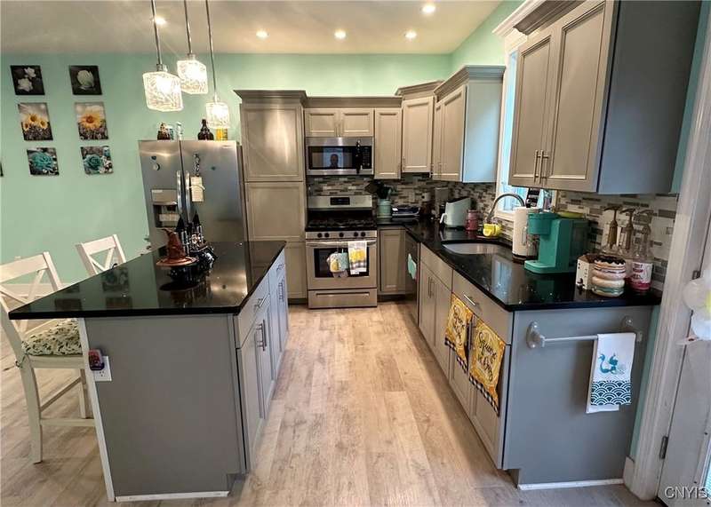 11/10/25 - PRICE IMPROVEMENT!!!!! THIS IS A MUST SEE AT THIS PRICE!!Welcome to 2757 Green St ? A Stunning Renovation That Feels Like New!This beautifully renovated 3-bedroom, 2-bathroom home has been completely redone from the studs up over the past five years, offering the charm of an established home with the peace of mind of modern updates.Major upgrades include: a new roof (with plywood), furnace with Wi-Fi thermostat, double-hung windows, updated plumbing and water lines, lighting, wiring, AFI electrical panel, natural gas pipes, framing, sheetrock, and more.The kitchen is a true showstopper, featuring sleek new cabinetry, black quartz countertops, stainless steel appliances, and a center island. The spacious family room accommodates a full-sized sectional and includes a charming built-in window bench with hidden storage. A versatile additional room can be used as a dining area, office, or sitting room. Bonus: a whimsical "Harry Potter" nook under the stairs!The first floor also includes a bedroom, a fully updated bathroom with soaking tub, and a laundry area with sliding barn door. Upstairs, you'll find an owner's suite and second bedroom?each with massive walk-in closets accented by sliding barn doors. Contemporary lighting enhances the stylish design throughout the home.Outside, enjoy the inviting front porch with stone details and white vinyl railings, a back deck leading to a private yard, and maintenance-free vinyl siding with "Forever" trim around every window. The detached two-car garage has been fully re-wired and offers excellent additional storage.Located just minutes from the Thruway, this prime spot offers an easy commute to both Rochester and Syracuse. If you've been searching for a home that feels like new construction?without the hefty price tag?this is the one for you!