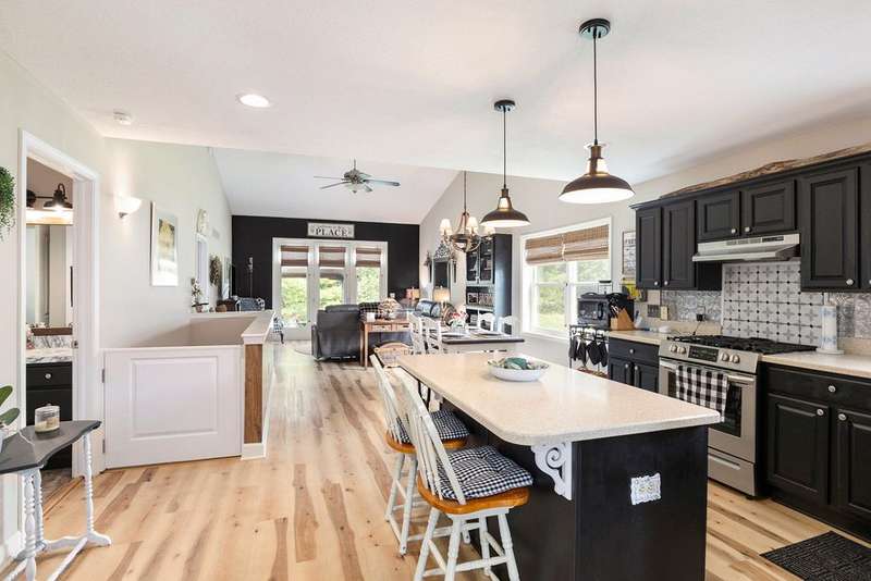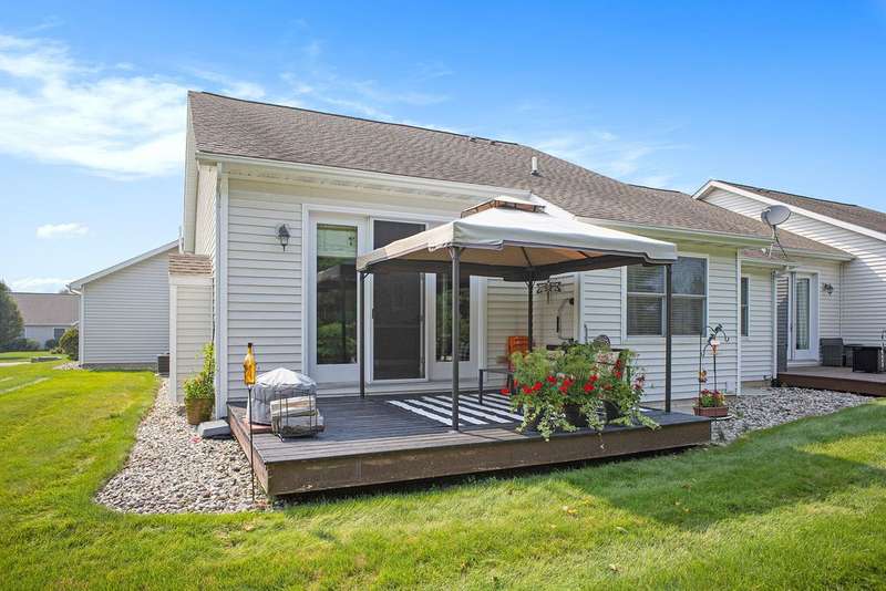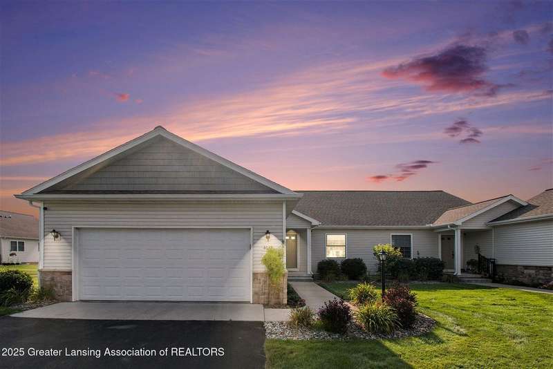 Tucked in the desirable Eastbridge Circle Condominiums of Stockbridge, this 2-bed, 2-bath gem offers comfort and style. Built in 2005, it features new waterproof flooring in the upstairs kitchen and living room, cozy carpeted bedrooms, and a stunning tall wall window leading to a peaceful back porch. Bright, spacious interiors include Corian kitchen counters, main-floor laundry, and an attached 2-car garage with opener. The expansive unfinished basement boasts tall ceilings and bathroom plumbing ready for your finishing touches. Large pantry storage area in laundry room. New air conditioning unit in 2024, New gas hot water heater in 2024, New furnace in 2022 pre-plumbed in basement and ready to finish for extra square footage. Egress access included. A rare blend of space, light, and tranquility.