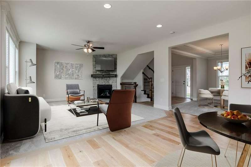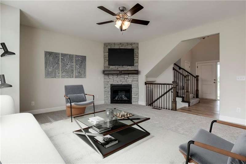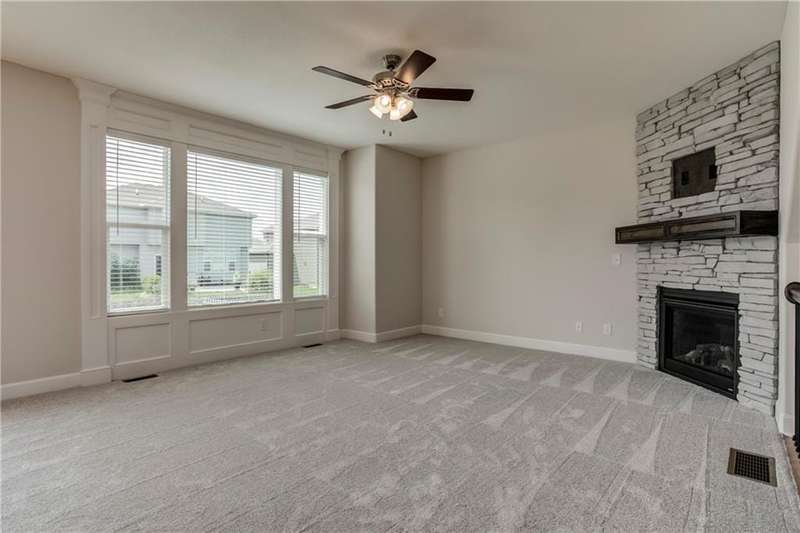 FENCE INCLUDED! Don't miss the opportunity to have this amazing FORMER MODEL home. One of the last 3 completed new homes available in this phase! Final phase of COPPER SPRINGS III Subdivision! Additional UPGRADES include a sprinkler system, full-height stone fireplace, Enamel kitchen cabinets with additional kitchen cabinets and island top extension, top-control quiet series dishwasher, stone-wrapped garage door elevation upgrade on 2-car area, and upgraded front porch. LED color-changeable lighted vault in the master bedroom, and the secondary bedrooms are pre-wired for future ceiling fans. Quartz kitchen countertops, jetted-master tub, garage door openers for both doors, keypad, and painted garage interior walls. 8lb pad under all carpet, R-49 attic insulation, insulated garage walls and door, 2-inch Faux wood blinds as shown. Towel bars and rings are included. Stone-look vanity tops, large shower tiles, framed mirror in half-bath and master bath. Taxes figured from the last tax bill. No Special Assessment Taxes in Copper Springs! HOA amenities include a heated pool with a slide and splash zone, and extended pool season if the weather cooperates! SQFT and taxes are estimated! Note: digitally staged photos included.
