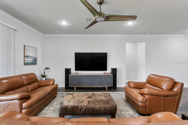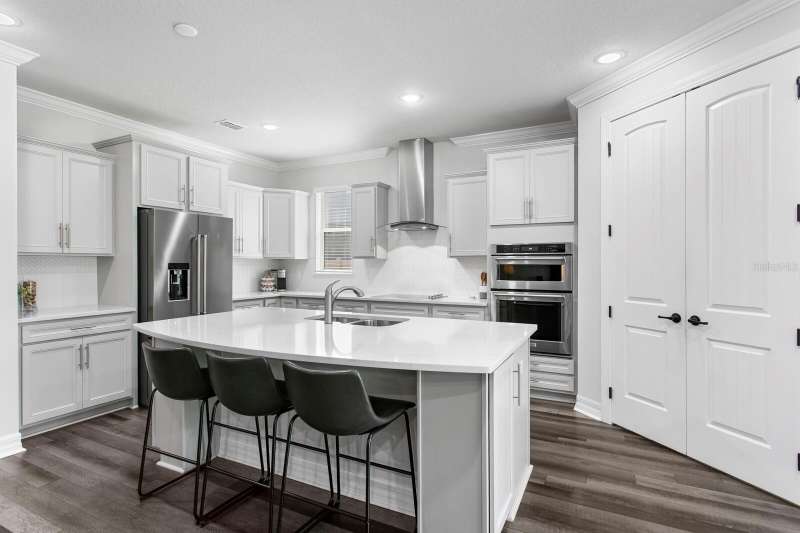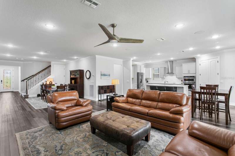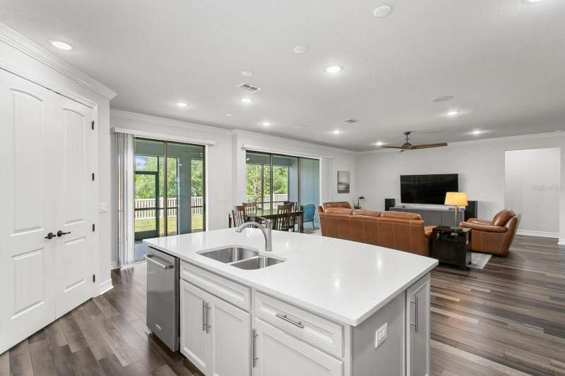 Under contract-accepting backup offers. One or more photo(s) has been virtually staged. Welcome to 19204 Briarbrook Drive, a beautifully upgraded Dockside Grand floorplan built in 2021. With 6 bedrooms, 4 full baths, and over 4,100 square feet of living space, this home is truly a standout in one of the area's most desirable gated communities. Enjoy all the benefits of a pool without the upkeep, just 2 minutes away, the community center offers a beautiful resort-style pool! This home has been meticulously maintained and move-in ready with every upgrade already done for you! The heart of the home is the showstopper kitchen designed to impress with an extended quartz island, high-end KitchenAid stainless appliances (including a 5-burner cooktop and wall oven/microwave combo), custom staggered cabinetry with crown molding, a herringbone tile backsplash, and a massive walk-in pantry. It's the kind of space that instantly feels like the hub of the home—perfect for both entertaining and everyday life. Just off the foyer, a private guest wing with two bedrooms and a full bath can be closed off with a pocket door—ideal for multigenerational living, dual home offices, or visiting guests. The first-floor *primary suite is a retreat all on its own*, complete with crown molding, comfort-height dual vanities, quartz counters, and an oversized walk-in shower with rain head. Three additional full bathrooms have all been upgraded with granite countertops, stylish tile accents, and comfort-height cabinets. The upstairs loft/media room is pre-wired for 7.1 sound and may be used as a movie room, playroom, gym or secondary living space. Every detail was thoughtfully designed from the 8' doors and oversized trim to the wrought iron staircase balusters and retractable triple-stacking sliders that lead to your screened lanai. Enjoy the outdoors? This oversized 0.23-acre lot that backs to a serene pond with conservation views, and has space to add a pool (pre-wired, too). The 3-car garage features epoxy floors and added electrical outlets. The home is energy efficient, with concrete block construction, radiant barrier roof sheathing, programmable thermostats, and dual-pane Low-E windows. Smart home prewiring, in-ceiling speakers, CAT6 ports throughout, security prep, and even lanai audio bring convenience and luxury together. The community, It’s gated, gorgeous, and packed with resort-style amenities: a clubhouse, community pool, tennis and pickleball courts, playgrounds, walking trails, and a fishing pond. And with low HOA fees, it’s as affordable as it is beautiful. From the premium fans to the UV-C systems on both ACs, no detail has been missed. Homes like this on conservation lots with premium upgrades are a rare find indeed!