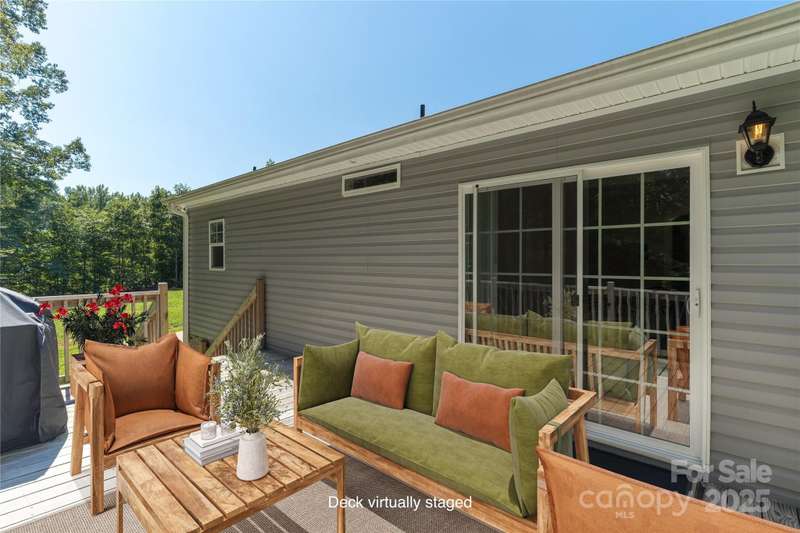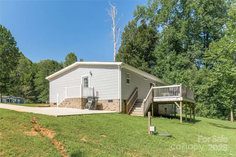 RANCH home that's also USDA eligible, on just under an acre lot in Mooresville! Country living, yet convenient to everything. Well maintained home built in 2022 by Clayton Homes, the split bedroom floor plan has it all. Open Kitchen with island, breakfast bar and stainless appliances, Dining area, large Living Room, and Laundry/ Mud Room, and a dedicated office space in the hall. Primary Bedroom Suite has walk-in closet, large shower and dual sink vanity. Two additional Bedrooms and 2nd Full Bathroom. Enjoy a double lot with trees and Deck looking into wooded and private backyard. Windward Pointe community is located near Lake Norman and the quaint towns of Troutman and Mooresville. Shopping areas close by including Lowe's Home Improvement, many restaurants and I-77 at Exit 42! Alos near Iredell Charter Academy of Arts and Science. Some warranties still in place until 7/15/2027. Low County taxes as a bonus.