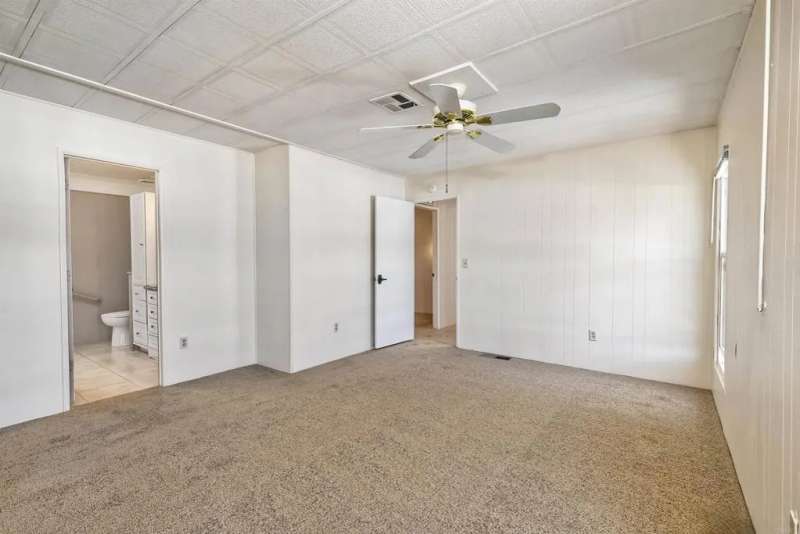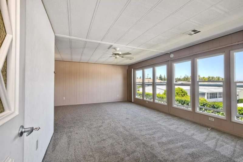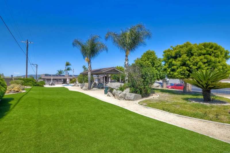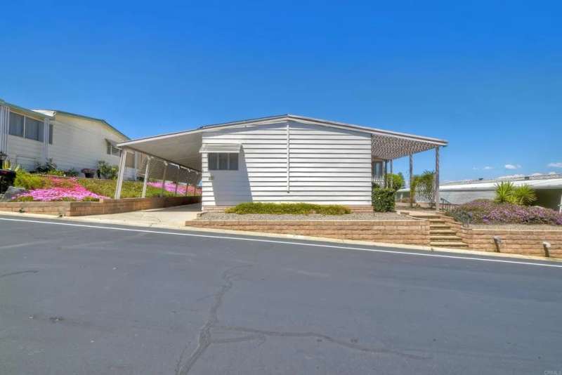 Nestled high on the hill this fantastic home has great views of the mountains in the distance. Light and bright inside, the layout is spacious with a bonus attached room with lots of windows, offering a nice breeze and great location in the park. New carpet and a roof that is 3 years young. La Moree Estates is a 55 plus community where residents own the land. The HOA fee includes a community pool, clubhouse, RV parking (if available), water, trash, sewer and cable. Conveniently located to shopping, 78 freeway, Palomar and Kaiser hospitals.