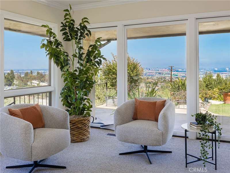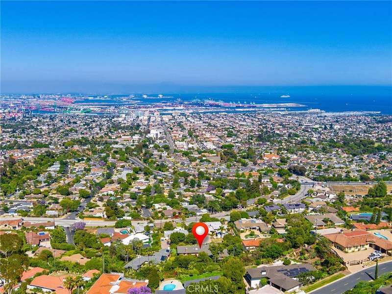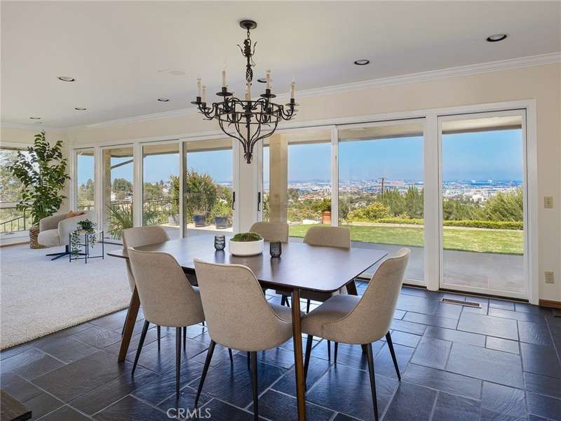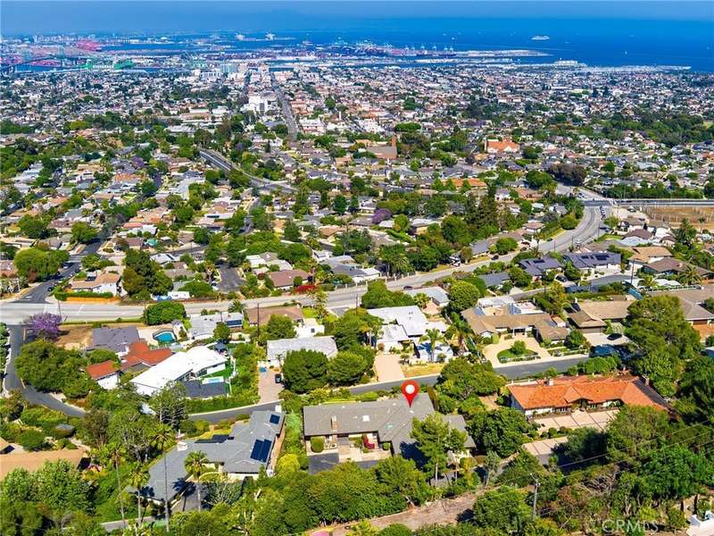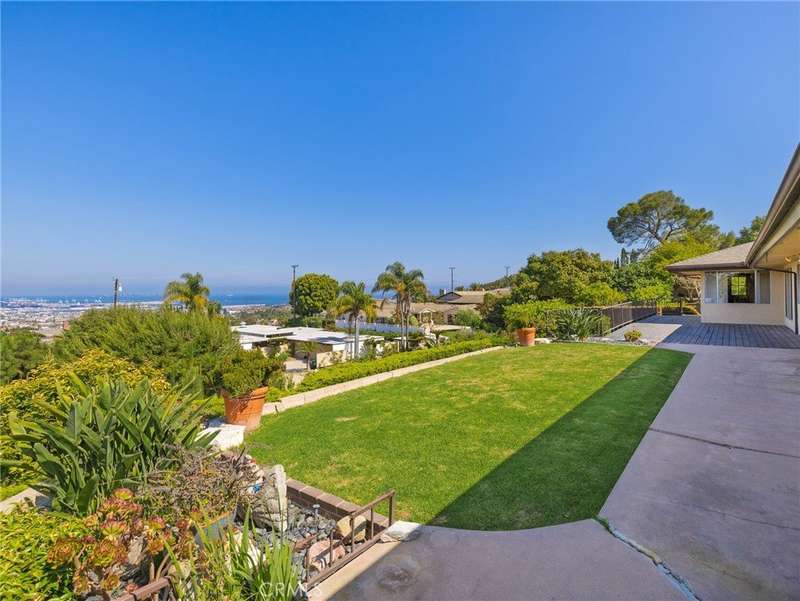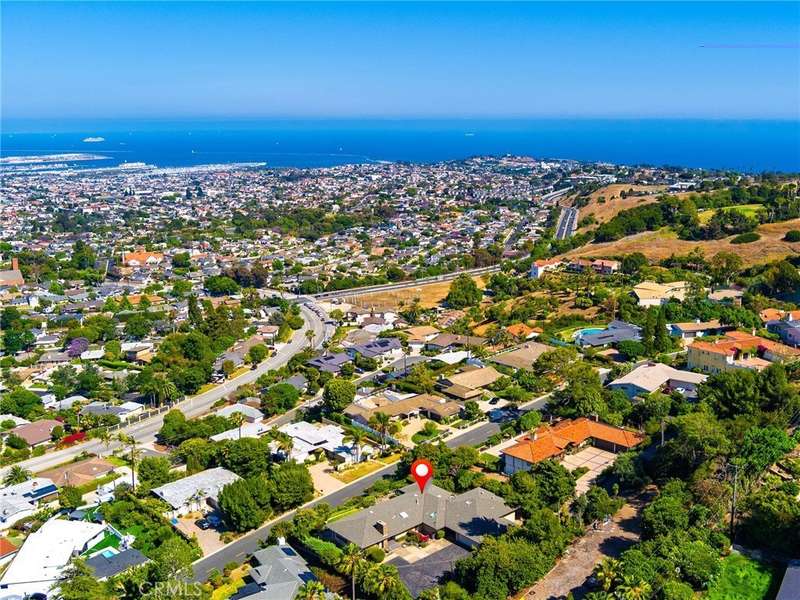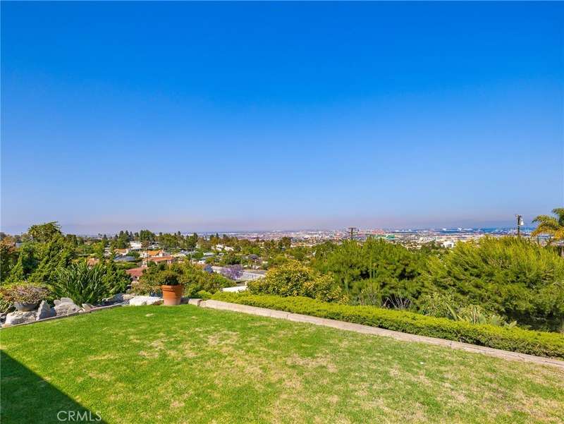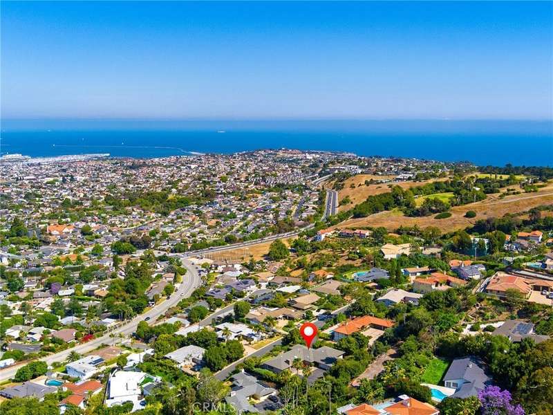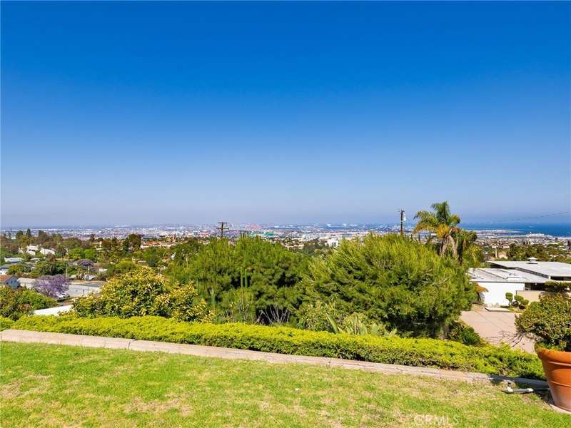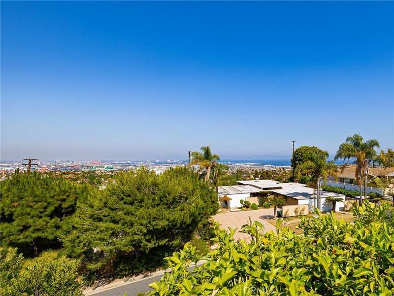 Mid Century Modern estate perfectly positioned off a quite private road with epic views of ocean, city and beyond. Recently appraised at 2.8 million the 7 bedroom 6 bath 4317 sq ft home sits on over half an acre and is being priced sharply at $2,540,000. The private road opens to a 7 car motor court with a two car garage and carport and lush landscaped grounds. Double doors open to black slate floors and a wall of glass exposing the views of ocean and city. The period perfect open floor plan is anchored by a cantilevered black slate fireplace surrounded by rustic stone. The open space maximizes enjoyment of a spacious living room and dining area ensuring return visits from friends and family. The granite kitchen with stainless steel appliances, butlers pantry and tons of cabinets opens to the amazing views. The master wing is oversized and enjoys numerous wood built-ins and a detailed orientated bathroom with separate tub and shower. Additional features include AC, work shop, very rare street to street lot with access on both sides. The Hawaii inspired parklike grounds are priceless with a huge covered patio area and mature fruit trees and flat grass areas. Fruit trees include apple, citrus, fig, avocado, apricot and more. Award winning Palos Verdes schools include Mira Catalina elementary, Miraleste Middle school and two of the best high schools in the State. Minutes away, you can enjoy a game of golf or dine at Terranea Resort. Or take a stroll through one of the many hiking trails, either way you are surrounded by the best of California coastal living.