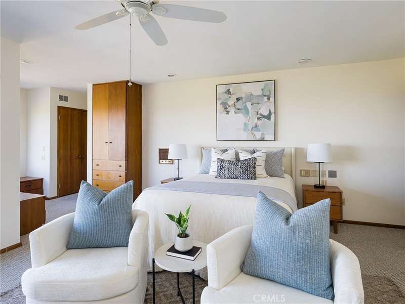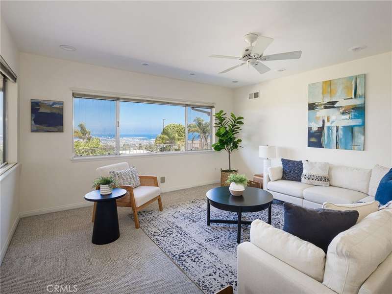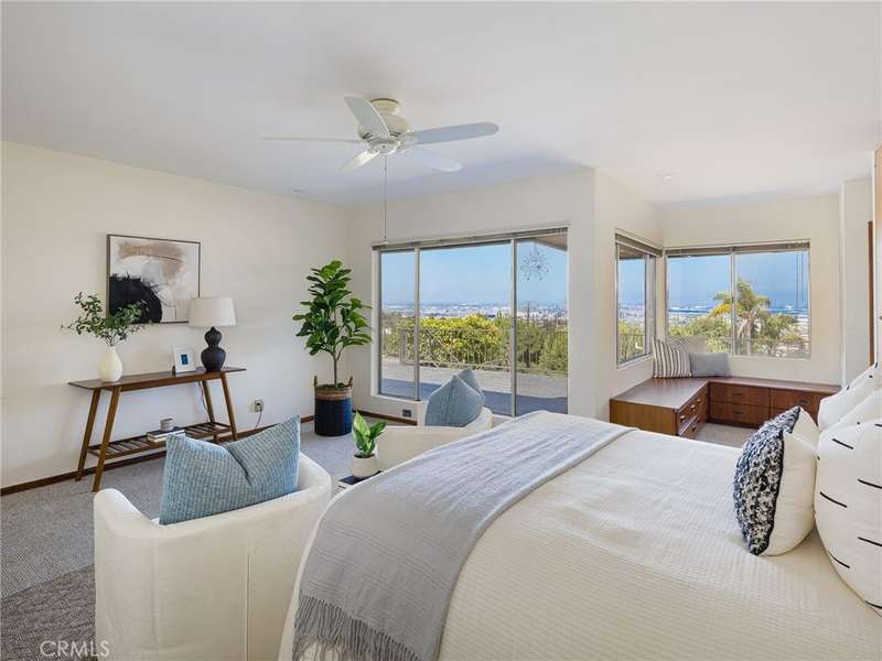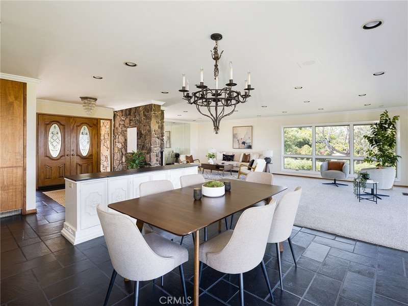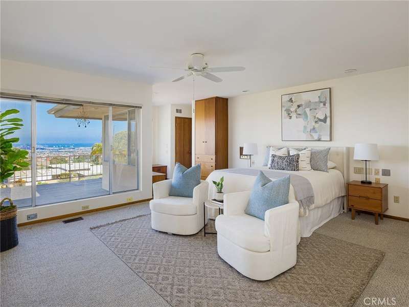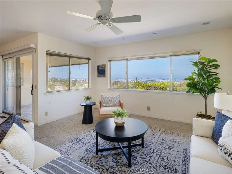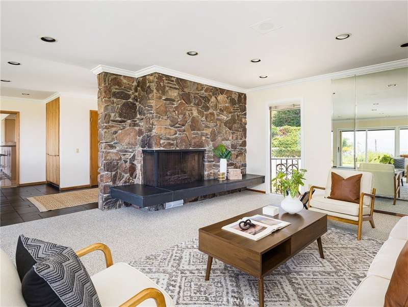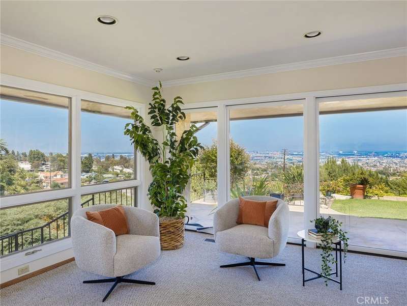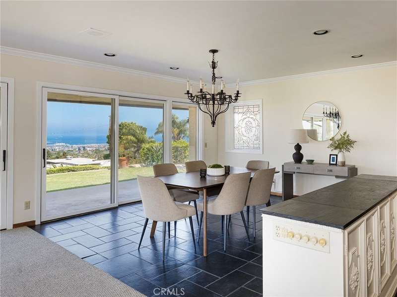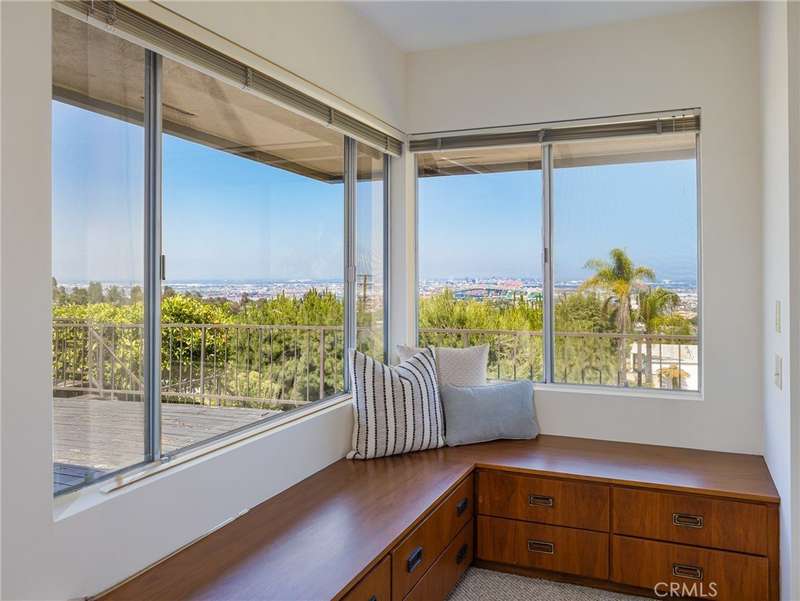 Mid Century Modern estate perfectly positioned off a quite private road with epic views of ocean, city and beyond. Recently appraised at 2.8 million the 7 bedroom 6 bath 4317 sq ft home sits on over half an acre and is being priced sharply at $2,540,000. The private road opens to a 7 car motor court with a two car garage and carport and lush landscaped grounds. Double doors open to black slate floors and a wall of glass exposing the views of ocean and city. The period perfect open floor plan is anchored by a cantilevered black slate fireplace surrounded by rustic stone. The open space maximizes enjoyment of a spacious living room and dining area ensuring return visits from friends and family. The granite kitchen with stainless steel appliances, butlers pantry and tons of cabinets opens to the amazing views. The master wing is oversized and enjoys numerous wood built-ins and a detailed orientated bathroom with separate tub and shower. Additional features include AC, work shop, very rare street to street lot with access on both sides. The Hawaii inspired parklike grounds are priceless with a huge covered patio area and mature fruit trees and flat grass areas. Fruit trees include apple, citrus, fig, avocado, apricot and more. Award winning Palos Verdes schools include Mira Catalina elementary, Miraleste Middle school and two of the best high schools in the State. Minutes away, you can enjoy a game of golf or dine at Terranea Resort. Or take a stroll through one of the many hiking trails, either way you are surrounded by the best of California coastal living.