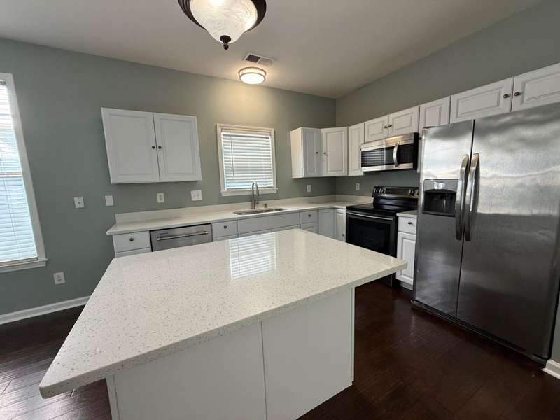 Home with Large Open Living Areas, 3 Bedrooms and 2 1/2 bath . Hardwood Flooring downstairs , very nice kitchen with New quartz countertops, stainless steel appliances, Refrigerator, Washer and Dryer. Large Master Suite with Walk-In closets, Balcony off of Master. Nice backyard with patio area and fenced.