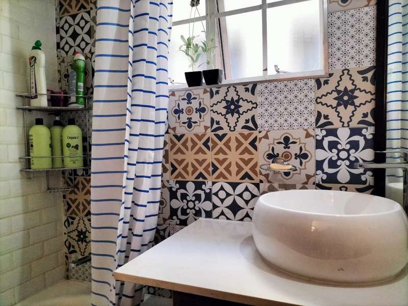 * Bathroom with a shower over the bath