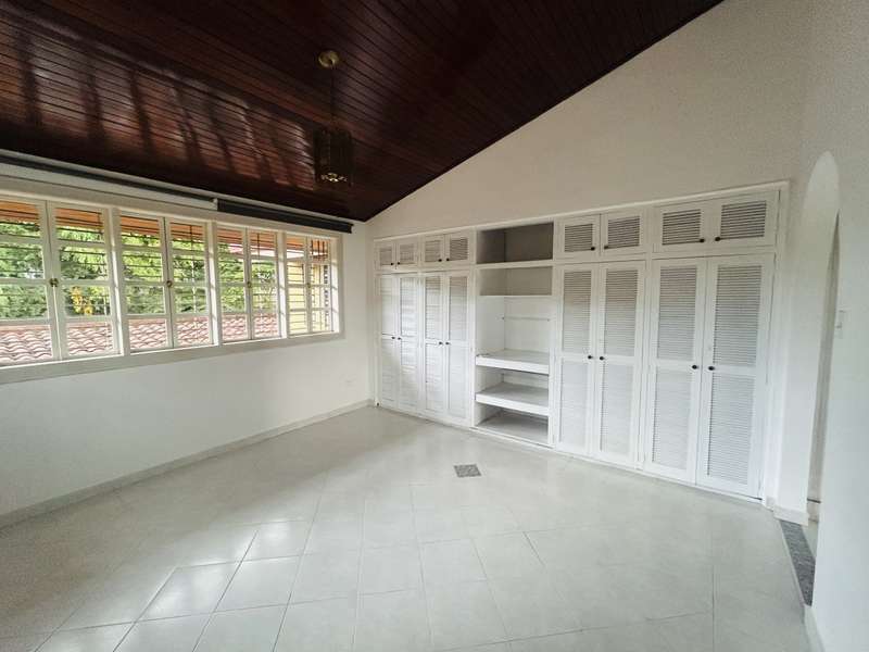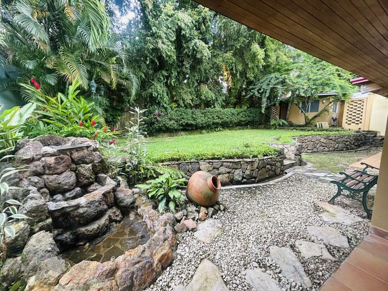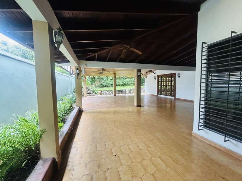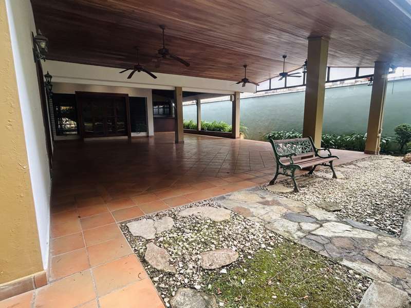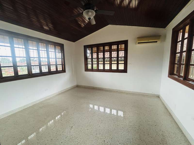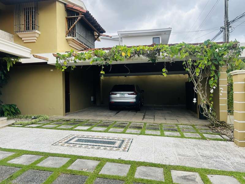 Living in La Alameda means enjoying a well-established residential area with high added value, where family life and urban comfort meet in one place. Surrounded by nature, wide streets, and elegant residences. A serene setting that invites you to walk, exercise, or simply relax. This residence is spread over two floors. The ground floor consists of a foyer, living room, dining room, kitchen, family room, study, guest bathroom, service bedroom and bathroom, laundry room, a large terrace with a bar, and four parking spaces and storage. The upper floor features three bedrooms, each with its own full bathroom, a den, and a balcony where you can enjoy nature. Outside, at the rear of the residence, you will find an annex with a bedroom and full bathroom, and a storage room. There is also a pump room for controlled watering of your plants. The residence features various finishes, including marble and granite floors, wood structures and a tongue-and-groove ceiling, and a gypsum ceiling in the family room. This exclusive neighborhood offers the perfect combination of exclusivity, tranquility, and a strategic location in Panama City.