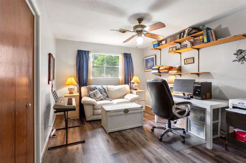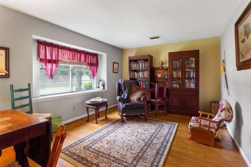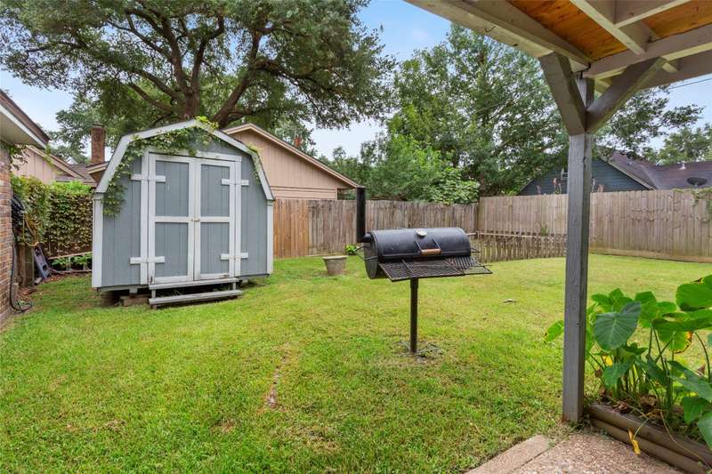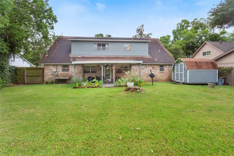 No HOA!!! Discover your private oasis in the heart of Dickinson. Nestled on a generous sized lot surrounded by mature trees and lush greenery, this home offers the ideal balance of peaceful seclusion and everyday convenience. Inside, you'll find four generously sized bedrooms, an open-concept family room and kitchen perfect for gathering, and a versatile formal living space that can easily serve as a home office or elegant dining room. Step outside to a covered patio overlooking a spacious backyard—perfect for morning coffee, weekend entertaining, gardening, or a safe place for children to play and explore. Water Heater replaced Oct 2025. This home offers character and charm with over 2000 sq ft living space - and no HOA!