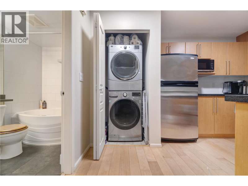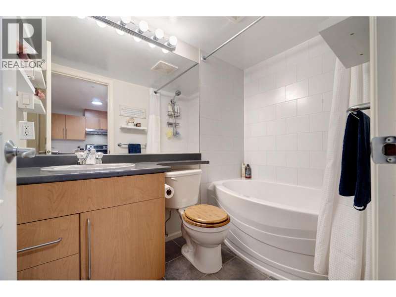 Rare townhouse-style unit with private front door entry in the well-maintained Highgate building - perfect for dog owners who want direct outdoor access! This end unit offers great privacy & tranquil views of mature trees through large windows. The 262 square ft patio seamlessly extends your living space outdoors. Situated on quiet Ross Rd, enjoy peaceful surroundings with convenient guest parking nearby. The versatile floor plan features a large bedroom, a den ideal for a home office or nursery, and an oversized walk-in closet. Finishes include hardwood floors, gas fireplace, granite countertops, soaker tub. Pet-friendly for two dogs/cats. Includes parking and storage. Building amenities feature a fitness center & bike storage. Unique layout combines townhouse convenience with condo living! (id:58403)