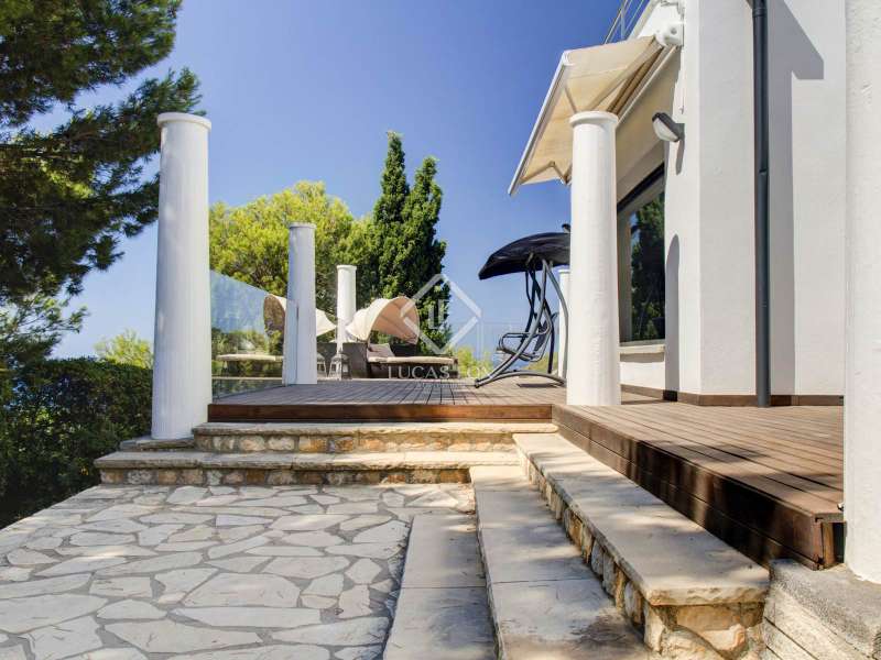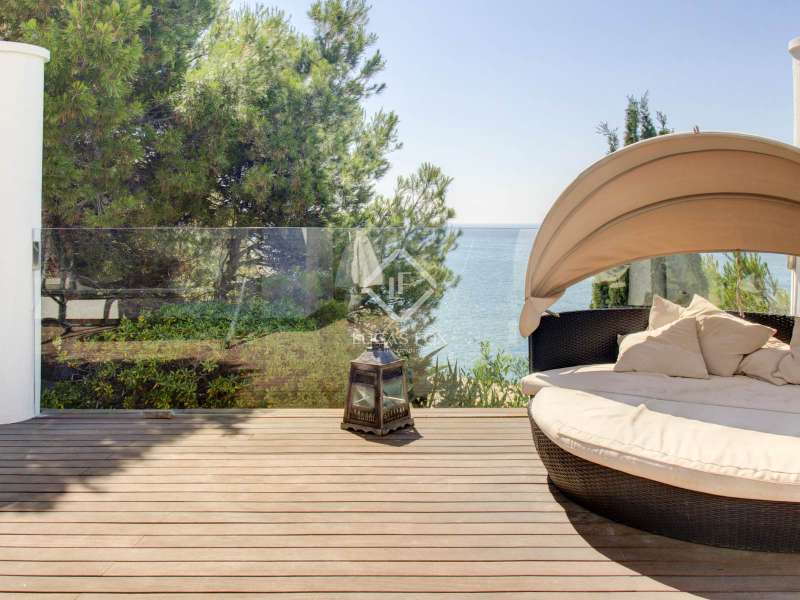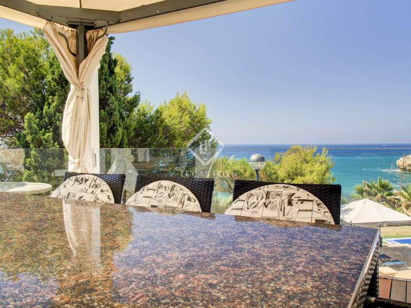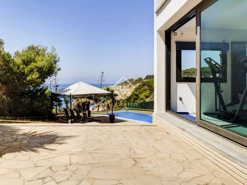 Magnificent 522 m² single-family home on a 1,036 m² plot . Located on a cliff overlooking the sea, at the foot of the Camí de Ronda, in a quiet development of Torredembarra and Altafulla, near Tarragona and the Costa Dorada. The property offers tranquility and excellent views thanks to its unique location surrounded by nature. The house is located on the "Camí de Ronda" (Roman Road) that connects Altafulla with Torredembarra, bordering the coast in a setting of natural interest. To the south, a short walk leads to Cala Canyadell, a beautiful, natural cove surrounded by Mediterranean forest, an idyllic beach on the Costa Dorada. To the north, the Torredembarra Marina and Yacht Club, along with its main promenade, are ideal for sampling the cuisine of this unique town. All of this is within walking distance. The exterior features a garden with an infinity pool surrounded by lawns and an adjoining chill-out area . A staircase leads to the surrounding area, which includes various areas, including a sun terrace and shaded trees, all with fantastic views. The rear of the house borders a utility patio, where there is a large barbecue area. We enter the property from the main street via a short staircase. The hall on this floor is spacious and bright, with double-height attic ceilings and a library. The service area consists of a kitchen with a central island and a breakfast area, access onto two terraces: one a chill-out area and the other a summer dining room . Adjoining the kitchen is a pantry equipped with shelving and a laundry area, which adjoins the exterior and is ventilated through a latticework window. On this same floor, we also find the living-dining room with sea views and terraces, as well as three double bedrooms (two with sea views), a full bathroom , and the main bedroom , with one wall enclosed by glass and sea views. This room features an impressive fully equipped dressing room and a full bathroom with a shower, bathtub, and window overlooking the cliff. A staircase with a glass partition leads to the first floor, which houses a loft bedroom and a large sun terrace. The lower ground floor features a two-car garage, a summer living room , a storage room, a double bedroom , and a guest bathroom. The area closest to the garden features a room currently used as a gym and an indoor pool with a counter-current swimming system. A magnificent opportunity to live in this stunning beachfront villa with all the amenities. Request a tour and be amazed by the surroundings. A luxury property in Tarragona is ideal for year-round living, whether as a first or second home, with over 300 days of sunshine and an average temperature of 17 degrees, primarily due to its location next to and facing the sea on the Costa Dorada.