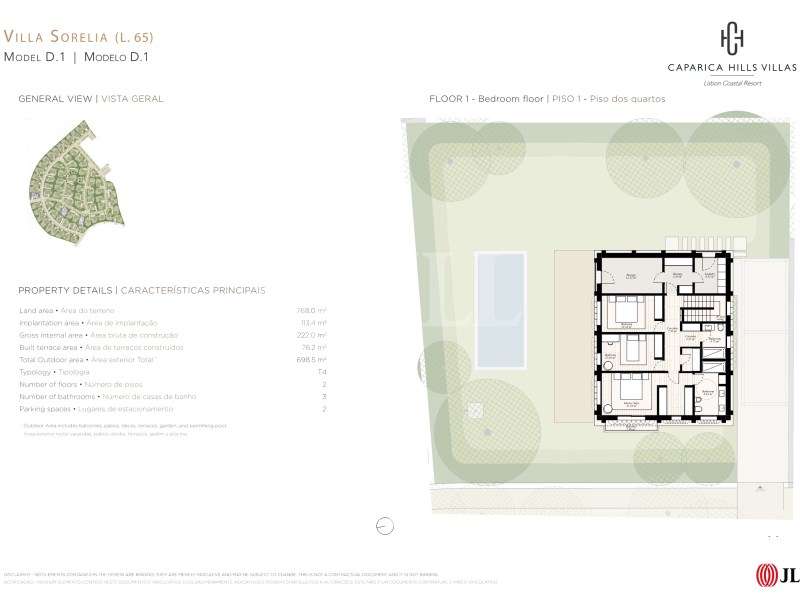 Moradia T4 nova com 222 m2 de área bruta de construção, jardim e piscina privativos, no Caparica Hills Villas, na Costa da Caparica. As unidades do Caparica Hills Villas oferecem garagem privativa, elevador, amplas zonas de lazer e espaços de arrumação. A construção incorpora elementos sustentáveis como painéis de madeira, coberturas ajardinadas e vegetação local, garantindo eficiência energética e conforto durante todo o ano. O empreendimento integra-se num resort completo que inclui o Hotel IHG Crowne Plaza Caparica Lisbon, instalações de bem-estar com spa, fitness club e estúdio de yoga, um campo de golfe de 9 buracos e uma zona comercial com 20 lojas boutique. Nos planos futuros estão previstos um centro desportivo e uma escola. A localização do Caparica Hills Villas combina tranquilidade e conveniência: a 5 minutos do mar, a 15 km do centro de Lisboa (15 minutos de carro) e próximo do aeroporto principal. Para compras diárias, o supermercado encontra-se nas imediações. O Caparica Hills Villas representa uma proposta de valor equilibrada para quem procura um investimento imobiliário ou residência numa das zonas de maior potencial de valorização da Grande Lisboa, conjugando proximidade à capital com a qualidade de vida junto ao mar. Categoria Energética: A #ref:90867