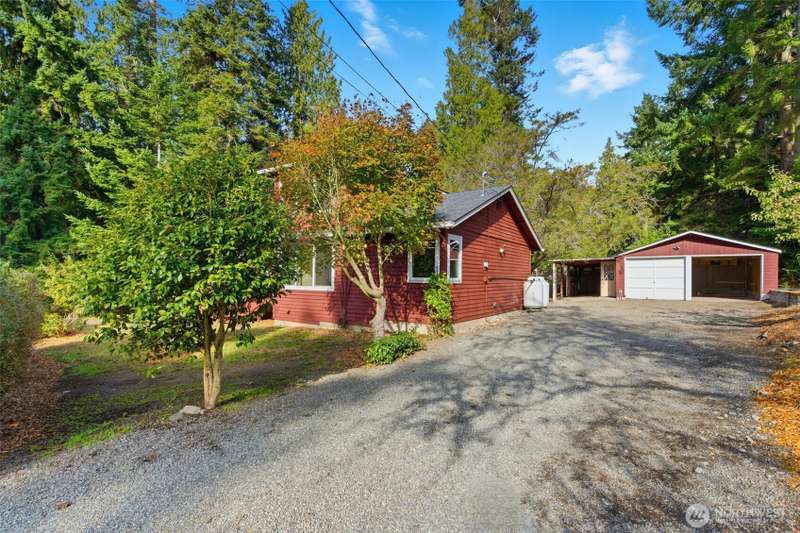 Rare opportunity to own a home in the heart of Indianola! Just steps from the Indianola Store, the dock and private beach. Featuring 2 bedrooms, 2 baths, 1,518 sq. ft. on .45 acres with partial water views. New carpet, fresh paint, and a newer roof. Open design connects the kitchen, dining area, and living room with a Lopi propane stove. A sunroom off the main entry welcomes natural light. Laundry/mudroom. Upstairs bonus room or oversized closet off of upstairs bedroom. Additional features include a two-car garage, carport, storage room behind the garage, and a tool shed, giving you plenty of space for projects and toys. Large private yard with loads of parking, fruit trees, and a stream running across the westside of property.