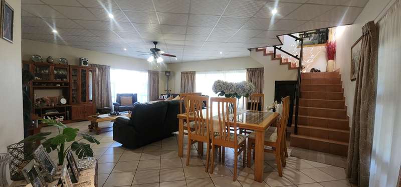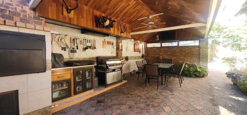 This farm style living and convenience of amenities of city life is something to experience. Magnificent home with top quality finishes and attention to detail. Downstairs we have 3 bedrooms, 2 bathrooms, spacious living area, dining room and kitchen, opening up to the braai area. The braai area also have an outdoor pizza oven. There is a huge laundry room Sparkling pool and lapa Magnificent landscaped garden with Koi dam 500 square meter workshop also forms part of this beauty There is so much more to offer, so don't delay, call me now