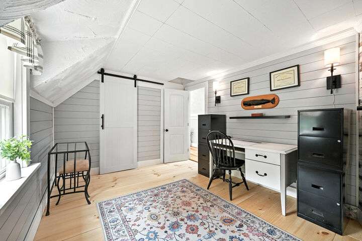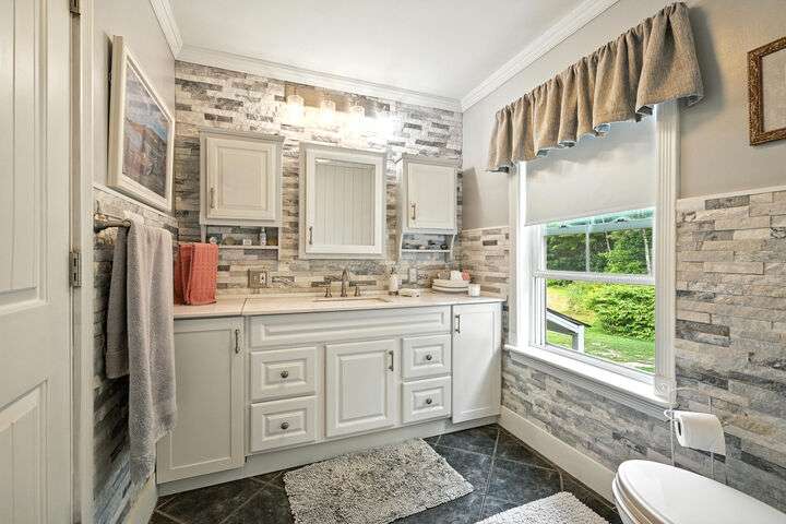 RARE. The same family has occupied this 2-acre estate since 1942. Completely renovated late 1800s 3 BD, 2 BA has several features that are rare! The property provides endless potential--from raising horses or goats, to hosting weddings and/or other events. An additional acre of cleared & seeded lawn is available to negotiate. Every space of this 2,700 sq.ft. home has been refurbished w/a careful eye to restoring original features, e.g., old hand-hewn barn beams & brick hearths, while providing the feel of a modern farmhouse. So many improvements here! Kitchen upgrades include granite countertops, new island, stainless steel appliances, refurbished cabinets. Bathroom upgrade downstairs includes new vanity, backsplash, tile walls, refurbished cabinets, new laundry room w/build-ins. Upstairs full bath is completely new with custom tile shower & glass sliding door unit, new vanity, and all new wiring and plumbing. *Brand-new septic tank & leachfield.* If you like entertaining, this offering provides everything you need -- including large bar/pub area w/a beautifully crafted custom 18' bar with pub stools that allow you to watch your favorite sports teams or simply enjoy listening to the music while having a glass of wine or cool drink. Outside, a spacious 1,300 sq. ft. deck overlooking a large lawn area with stone walls, flowers, shrubs, and a foot bridge to the property beyond. Enjoy several gathering areas to gather & relax, including a custom 7' stone fireplace to enjoy the comfort of a wood fire. And a screen-in gazebo for grilling and lounging. If you prefer inside activities like pingpong, pool, or card games, enjoy the the large recreation/family room just off the pub area. These spaces have hosted many weddings & other special occasions. Private country setting, nestled between Kennebec & Eastern Rivers offers nearby boating & fishing. Less than 40 min. to Portland Jetport, Popham & Reid State beaches. Popular restaurants less than 10