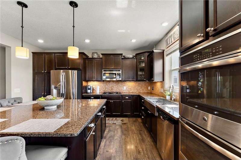 Outstanding home finished top to bottom, with over 4,200 finished sq ft! Beautifully finished, you will enjoy the flow of this home & spaciousness of each room! Step into this welcoming home with an office upfront, spacious entry & large open floor plan! The gorgeous kitchen features beautiful cabinets & wall pantries, granite countertop and a huge granite center island, ready for all your meal prep, baking or quick snacks. Wide plank flooring, kitchen window, farm sink, double wall ovens & SS appliances are included in this large kitchen while the undercounter lights accentuate the stone backsplash. The adjoining dining room steps out to the back cement patio for summer get-togethers while the separate formal dining room is ready for entertaining. Enjoy gatherings in the spacious living room, surrounded by natural light or enjoy a cozy day around the lovely gas fireplace. Looking for a little quiet? The upper-level loft is ready for relaxing with a good book or watching your favorite movie! Beautiful primary suite has plenty of room, large picture window & lovely bath with serenity shower, double sinks, tiled floors & large walk-in closet! Additional bedrooms are also large, with a Jack-N-Jill full bath & walk-in closets as well as a fourth bedroom with private three-quarter bath & walk-in closet. The upper-level laundry is conveniently located near the bedrooms with cabinets, folding counter plus new washer & dryer. Newly finished lower level is open & inviting! Fantastic space for game day, complete with stainless countertop for snacks plus mini fridge, storage cabinets & wide-plank flooring. Room for your table or foosball! Large family room offers many options for your exercise space or playroom. Fifth bedroom gives options for guests with the three-quarter bath nearby. Plenty of storage options in the huge utility room. Beautifully maintained inside & out, on a great lot! Located near the HOA pools and playgrounds as well as major highways & shopping! Welcome home!