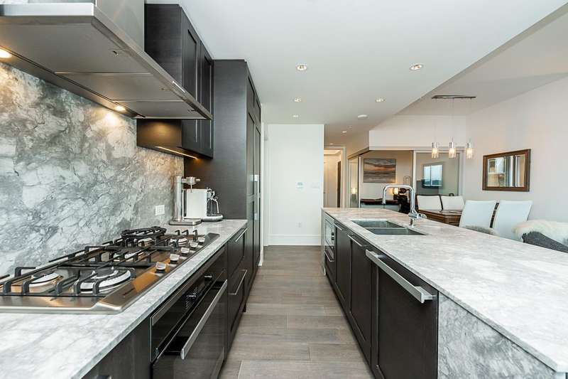 FOSTER MARTIN - The epitome of luxury in the heart of White Rock! This beautiful 2 Bed, 2 Bath & Den Corner unit has it all. Enjoy the panoramic view of Mountain Baker & the ever exciting waters of Boundary/Semiahmoo Bay from the 2 balconies which seamlessly allows indoor living to expand to the outdoors. Excellent floor plan boasts lots of natural light & space. Thoughtfully designed with elegant touches to inspire, featuring top-of-the-line Miele appliances, hardwood floors, carrera marble tiles and countertops, a cozy gas fireplace and upgraded fixtures. Amazing 10,000 sq.ft. amenities. Walking distance to everything. School catchment, White Rock Elementary and Semiahmoo Secondary.
