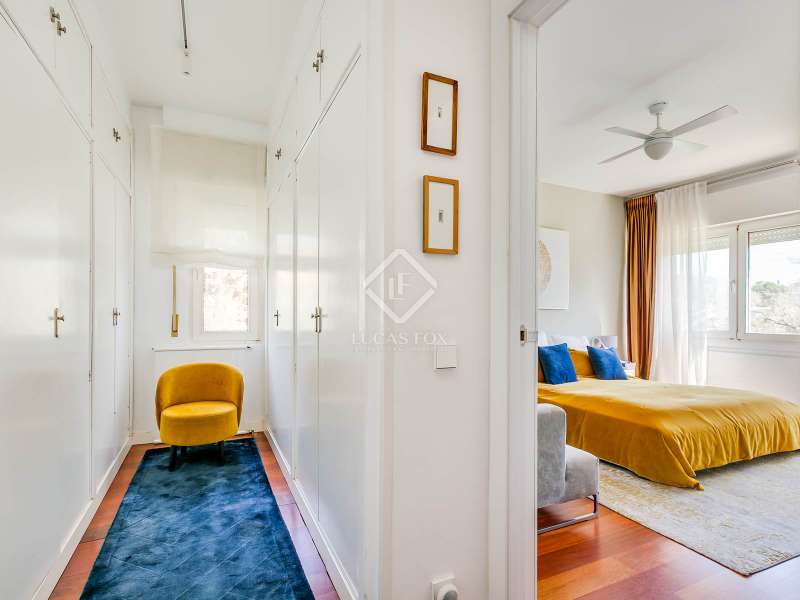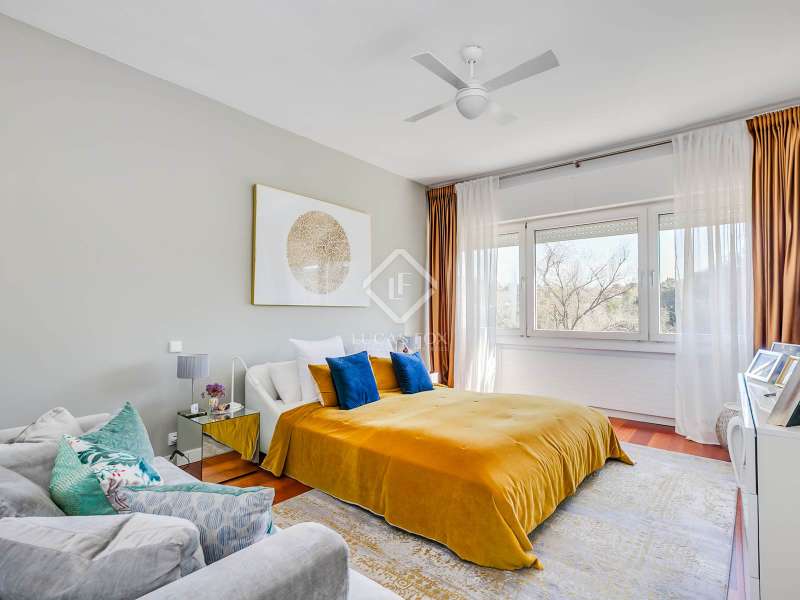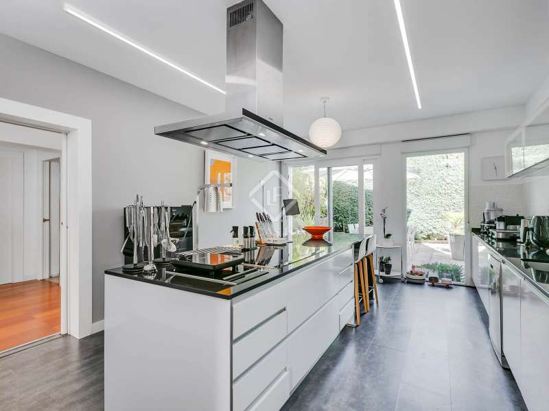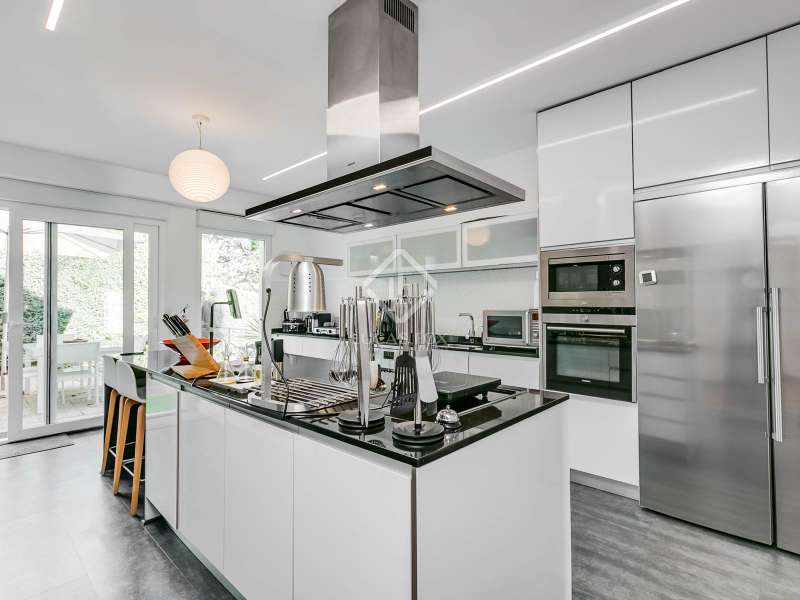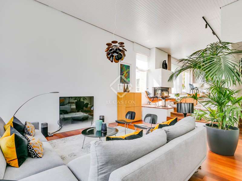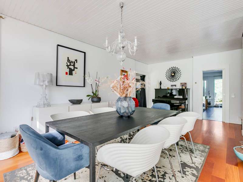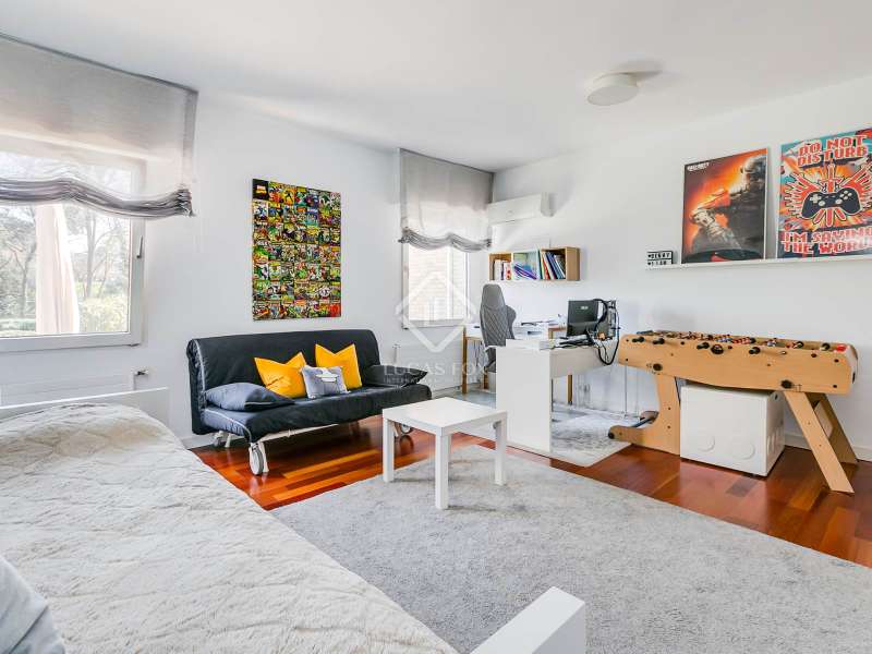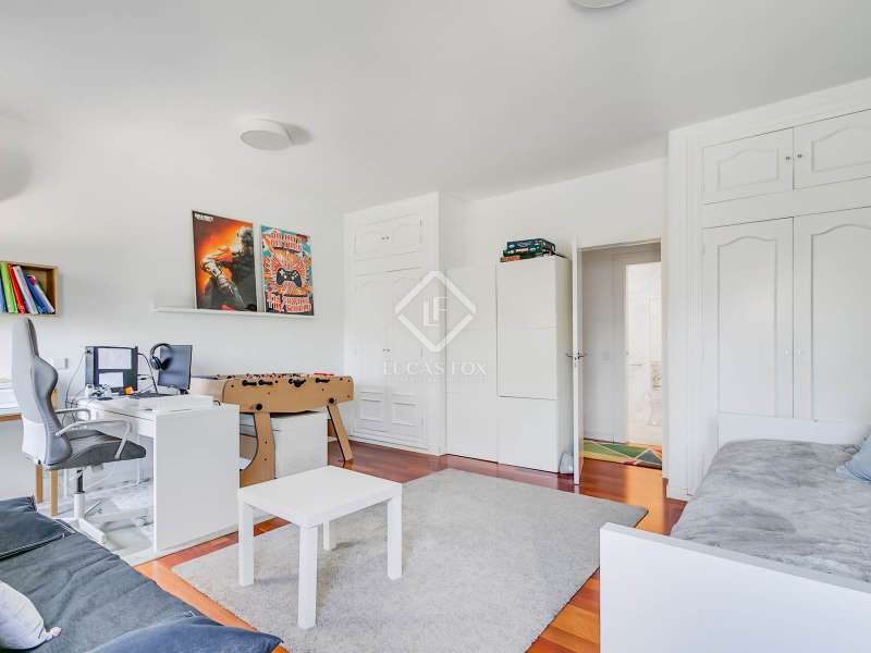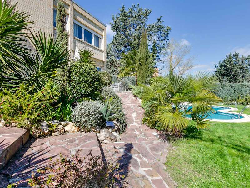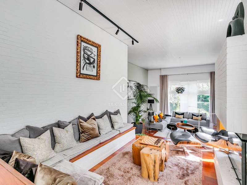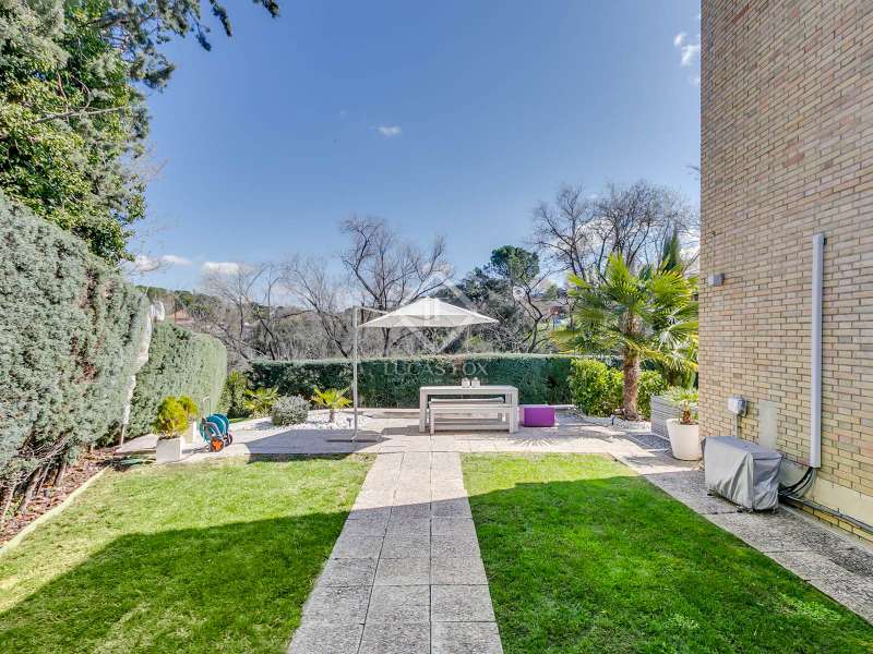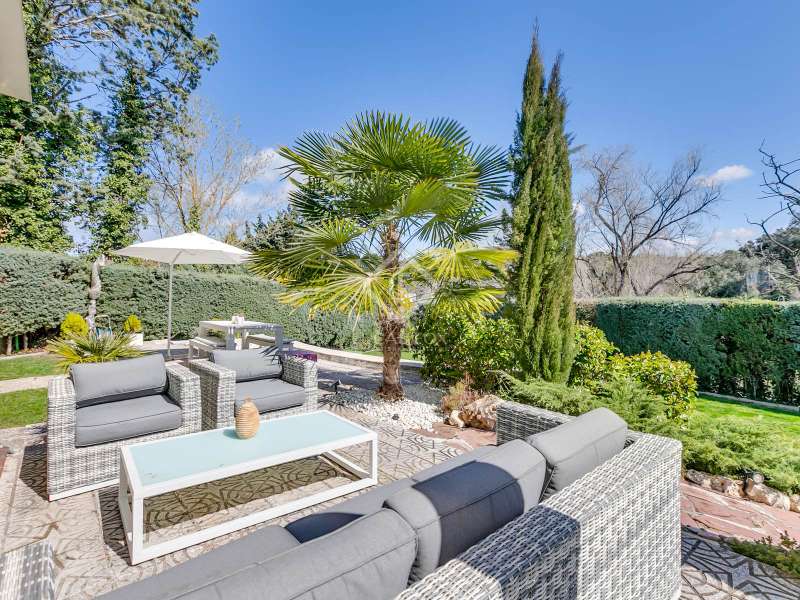 Lucas Fox presents this fully renovated property for sale in Santo Domingo, Madrid. The property features modern architecture and is laid out on half floor. This achieves excellent use of space, maximizing functionality and orienting all rooms toward the garden. From the entrance hall, on the right, we find a separate apartment with a living room and a bedroom with a full bathroom . To the front, we enter the spacious living-dining room, which has large windows leading to one of the property's porches. From the hallway and dining room , we also reach the kitchen, equipped with a central island and direct access to the second porch, which includes a barbecue area. The laundry room and pantry are located next to the kitchen. Going up half a floor, you'll find the main bedroom, which includes a walk-in closet and private bathroom. On this first floor, there's also a second, large space currently used as an office. On the ground floor, there are two very spacious bedrooms, both with direct access to the garden and pool area. These bedrooms share a full bathroom , and there is also an additional toilet . The property features a mature garden , swimming pool, well, chill-out area, gym, air conditioning, mains gas heating, and a garage with capacity for two cars. Contact us for more information.