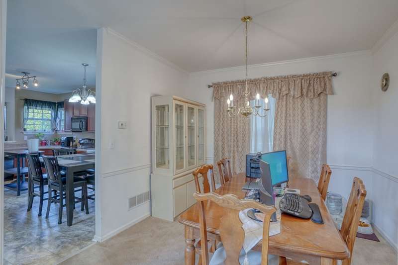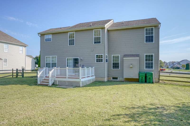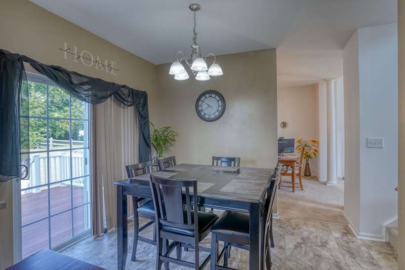 Welcome home! Enjoy walking up to the front porch that you can sit out on into the foyer of this well cared for home. On the first floor you will find a living room, dining room, kitchen with eating area and sliding door to generous sized deck to enjoy your morning coffee or relax on after a long day overlooking a lovely fenced rear yard. The property line goes beyond the fence and backs to a wooded area which backs to open space. Also, on the first floor you will find a lovely family room with a fireplace to enjoy. There is a half bath and access to the 2 car garage and basement. As you go upstairs you will find the primary bedroom with 2 walk in closets and primary bathroom with soaking tub for your relaxation, dual sinks and shower. There is also 3 additional generous sized bedrooms, bathroom and laundry room. The updates to this home include a new garage door, motor and opener in 2023, Whirlpool dryer 2024, Smartcore Ultra-Premium water proof flooring installed in the kitchen, foyer, and 3 bathrooms in 2025, vinyl LVT flooring upstairs hallway and 1 bedroom 2021, freshly painted shutters, on and around front door and around garage door 2025.