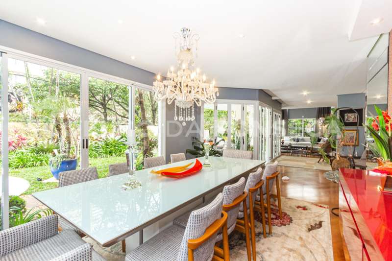 Casa em Condomínio no bairro Cidade Jardim com 927m² área construída, 5 dormitório(s), 5 suíte(s), 8 vaga(s), 5 banheiro(s), piscina, escritório, mobiliado (a), ar condicionado, dep. de empregados, reformado (a), varanda, elevador.