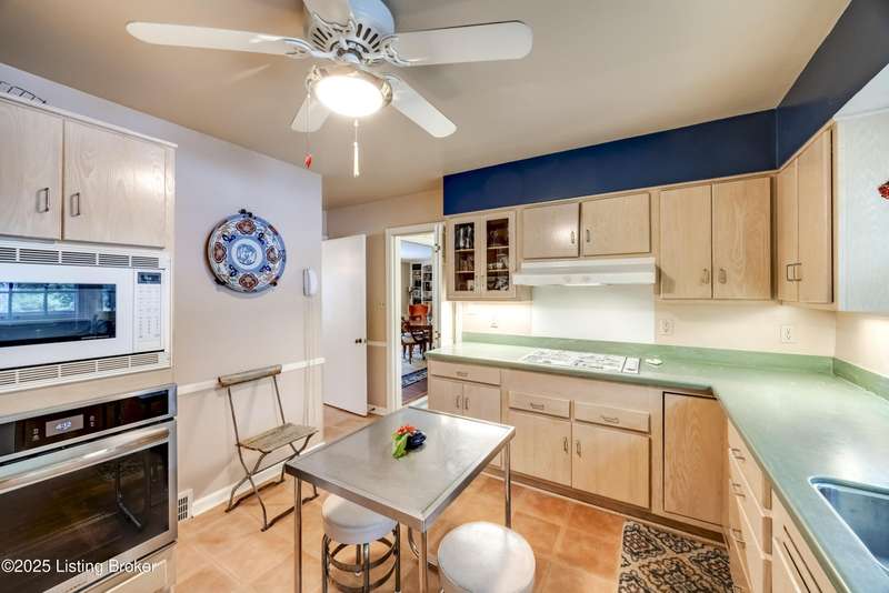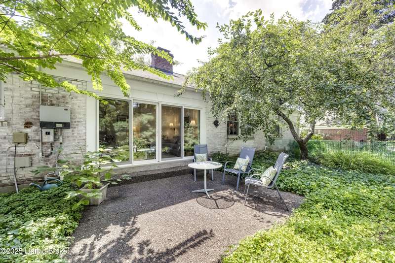Charming Mid-Century Ranch in the Heart of Windy Hills Nestled in a lush, garden-like setting in one of Louisville's great smaller cities, this delightful mid-century brick ranch offers timeless appeal and a rare opportunity. Built in 1951 and available for the first time in over 40 years, this 3-bedroom, 2-bath home is brimming with character, thoughtful updates, and vintage charm. Original hardwood floors, custom trim work, and built-in features run throughout the home. The spacious living room showcases cantilevered bookshelves, a wood-burning fireplace with an elegant mantle, and abundant natural light. Adjacent, the formal dining room—currently styled as a cozy sitting room—features a classic chair rail and wallpaper detailing. The kitchen is both functional and stylish, with Corian countertops, generous cabinetry, terra cotta-toned flooring, and appliances including a JennAir cooktop with hood, GE fridge, Bosch dishwasher, and a wall oven with convection and air fryer capabilities. The step-down sunroom is a showstopper, boasting a full wall of windows and updated sliders that frame serene views of the landscaped backyardmaking it the perfect all-seasons retreat. The primary suite offers hardwood floors, new Norman custom blinds, and a surprisingly spacious walk-in closet. Its en suite bath includes a porcelain tile floor, ceramic sink, updated commode, linen storage and new Norman custom blind. Two additional bedrooms also feature hardwood flooring and ample closet space, while the hall bath includes a raised pedestal sink, tiled floor, tub/shower combo, linen closet and new Norman custom blind. The large unfinished basement offers endless storage with shelving that remains, a nostalgic utility tub, newer windows, sump pump, and included washer/dryer. A partial crawl space includes a vapor barrier and blown-in foam insulation for energy efficiency. Outdoors, you'll find a horticulturist's dream with mature trees, curated shrubs, and striking hardscaping that creates a peaceful, private retreat. The detached 2-car garage offers underground electric service, extra storage, and an opener on the right-side door. Solar panels installed on the house by SunWind Power Inc. add eco-conscious value and are metered separately. Electric service and AT&T phone and fiberoptic cable to the house are all underground. This lovingly maintained Windy Hills gem offers a rare chance to own a property with modern comfort and irresistible charm. Don't miss it!