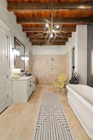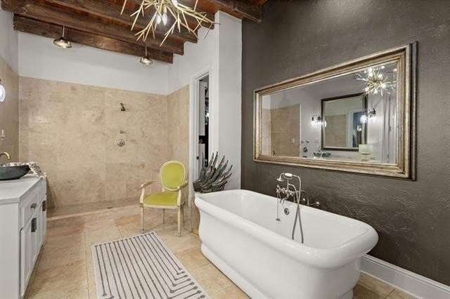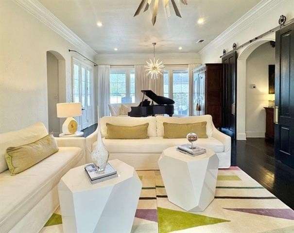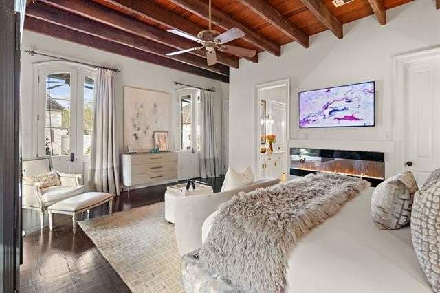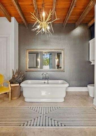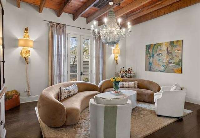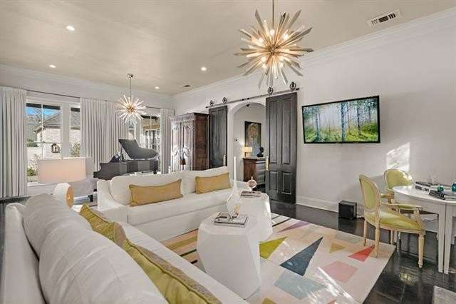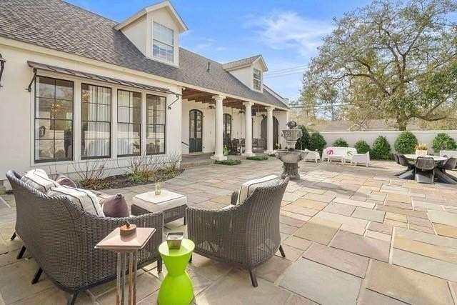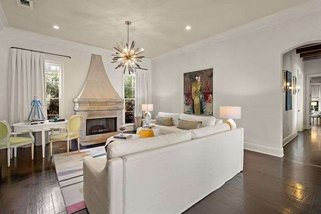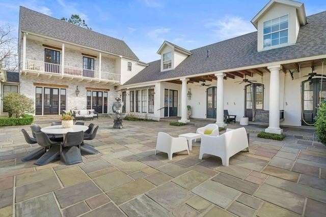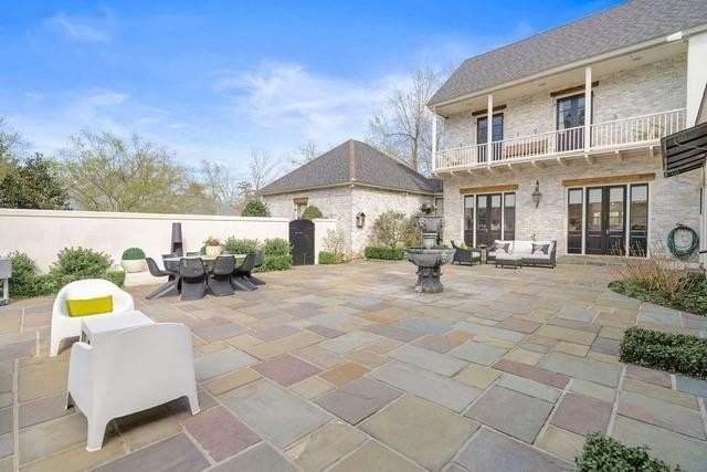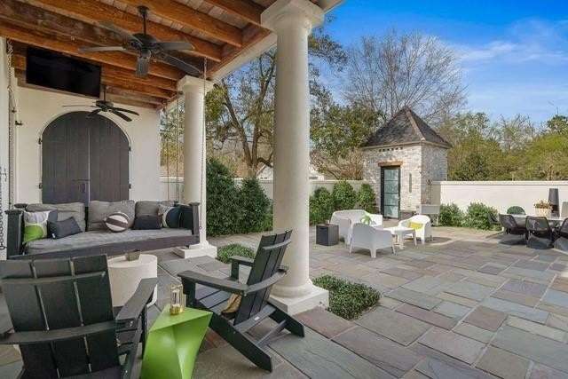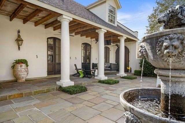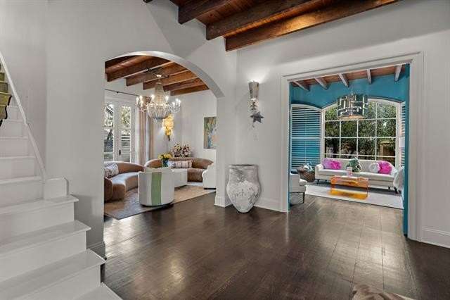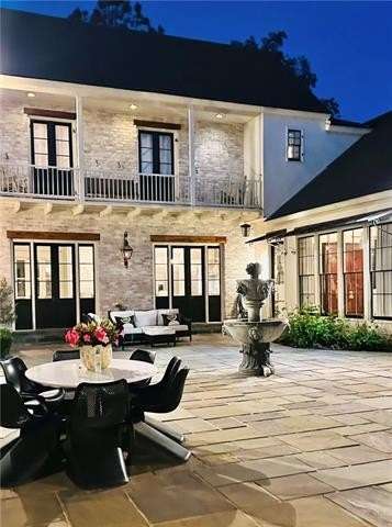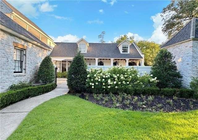 This sophisticated French Quarter-Style custom home in Old Covington is an architectural masterpiece, seamlessly blending timeless elegance with modern luxury. Designed by Andy McDonald, Gerrie Bremermann Design and MCC Design Studio, this home offers the best of everything—custom craftsmanship, high-end finishes, and impeccable design. An expansive 1,900sf entrance courtyard enclosed by a concrete wall and finished with antique flagstone creates a stunning private oasis. Ten sets of French doors, upstairs and down, allow for true alfresco entertaining and an effortless indoor-outdoor flow. Rich architectural details throughout render an immediate feeling of expert craftsmanship and sophistication, including antique barge-board flooring for a warm, historic ambiance, ceilings clad in antique beams, custom designed mantels and millwork and a pair of solid mahogany doors reclaimed from an old church in Pennsylvania. Experience the luxury of high-end Waterworks fixtures, including a $14,000 tub, a $2100 kitchen sink, and Waterworks faucets throughout. Carefully curated designer lighting and draperies are found throughout this stunning home. A gourmet kitchen, open to the keeping room, is thoughtfully designed for both culinary excellence and effortless entertaining. All concrete countertops were hand-poured and hand-stained on-site to European standards, ensuring a bespoke, old-world finish. The staircase features an original design by renowned artist Tony Mose. A primary with a luxe spa-like bath showcases French doors accessing the courtyard. A second ensuite bedroom currently used as a sitting room also graces the main floor. Four additional bedrooms and four baths plus a den are upstairs. Of note are fresh paint in 2024, a 3-year-old roof and main AC system for long-term peace of mind, a generator, and a a climate-controlled pigeonnier. The epitome of elegance, functionality, and luxurious living right in the heart of town mere minutes to all of the festivities of Covington. A true showplace and entertainer’s dream!
