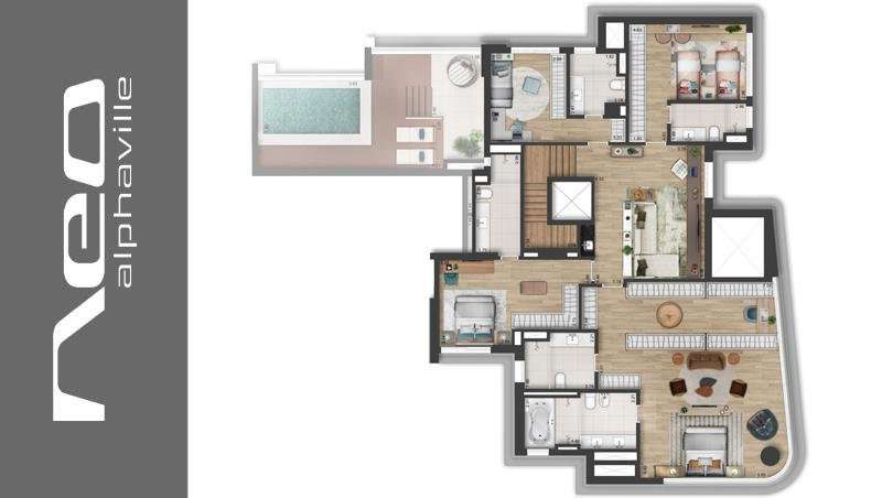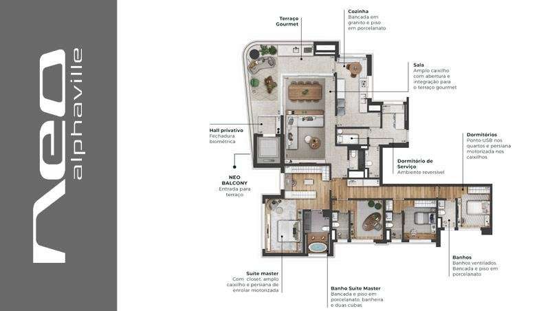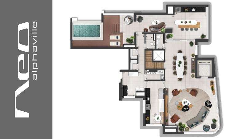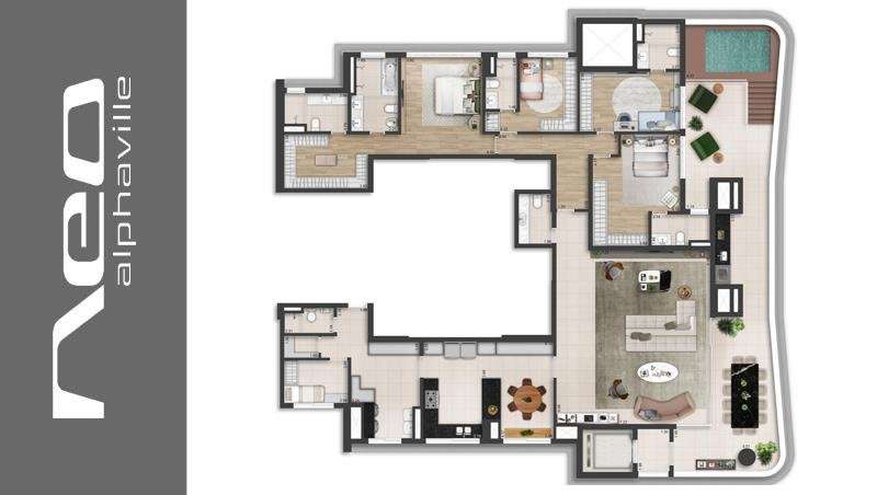 Apartamento no condomínio NEO ALPHAVILLE, com 244m² área privativa/útil, 4 dormitório(s), 4 suíte(s), 4 vaga(s), 6 banheiro(s).