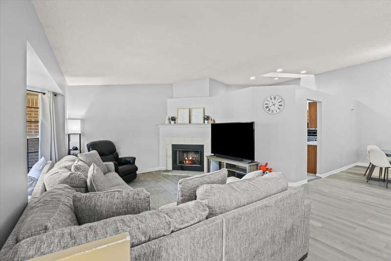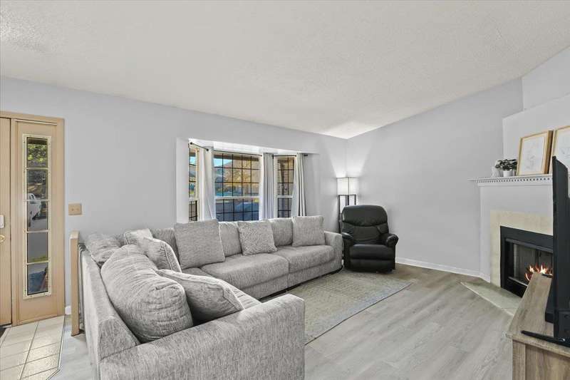 Move right in to this beautifully updated corner-unit condo! Sunlight fills the bright and inviting layout, featuring a cozy fireplace perfect for relaxing evenings and a private deck for outdoor enjoyment. The finished basement offers new flooring and includes two additional bedrooms, providing extra space for guests, an office, or hobbies. Fresh paint flows throughout the home, and the kitchen features new tile flooring, newer appliances — washer, dryer, dishwasher, oven, microwave, fridge, and garbage disposal — plus a stylish new island ideal for cooking and entertaining. All bathrooms feature new toilets, and a new sump pump adds peace of mind. The laundry area offers washer and dryer hookups for first-floor access if desired, adding extra convenience. Additional highlights include a spacious 2-car garage and access to community amenities such as a pool and tennis courts. Conveniently located near grocery stores, restaurants, and everyday essentials, this home blends comfort, style, and functionality in one wonderful package.