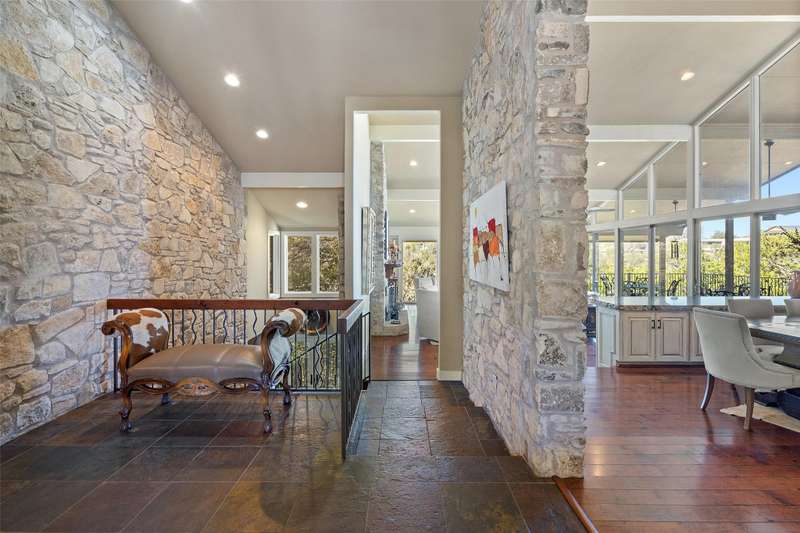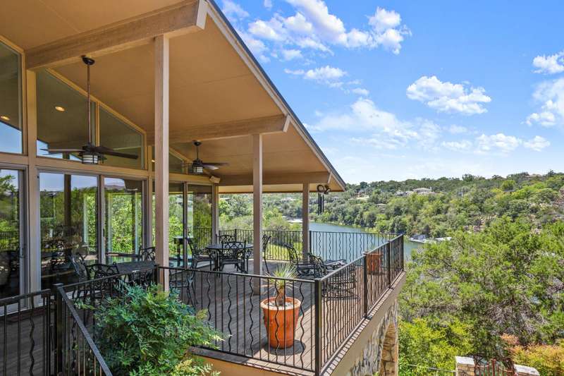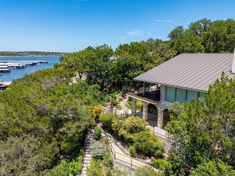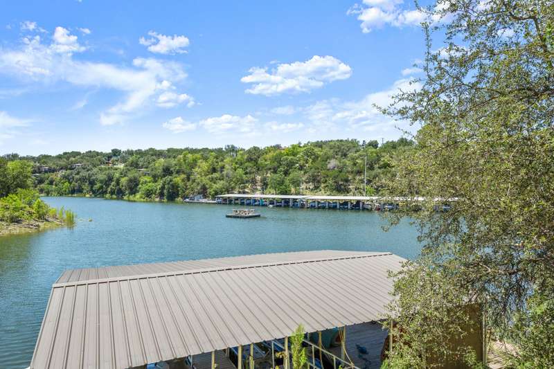 The Lake is up and the price is down! This mid-century house is the perfect lakefront getaway. Built for casual entertaining, all eyes are focused on the incredible setting overlooking Lake Travis. Built in 1975 with several refreshes, this home provides an oasis of tranquility and privacy. The floor-to-ceiling windows and doors open the living room to the outside patio where hosting, grilling and endless views are offered. Three ensuite bedrooms are on the main level including the primary along with an additional primary ensuite downstairs. Two living areas, dining, an office, powder bath and walk-in pantry round out the flow.
