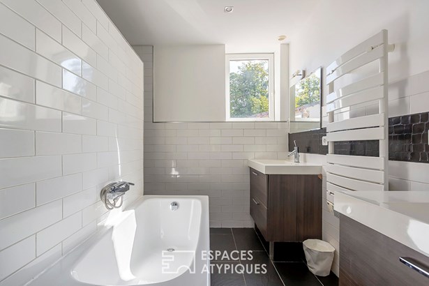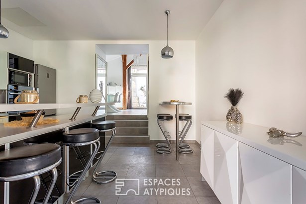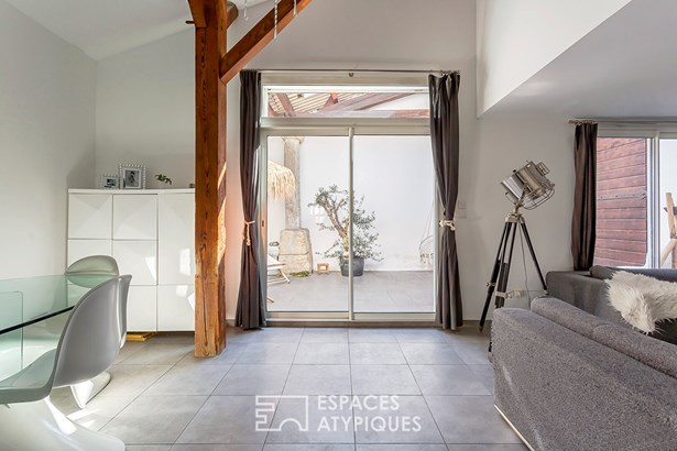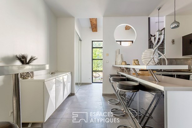 In Saint-Didier-au-Mont-d'Or, this fully renovated 95sqm house is housed in an old farmhouse with a shared courtyard. Here, the authenticity of the place blends with a renovation designed for light and comfort.
