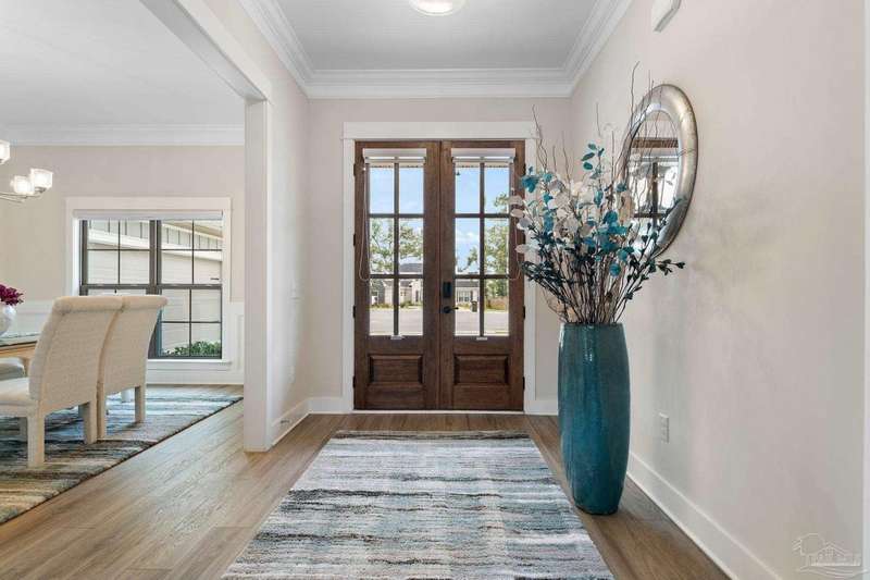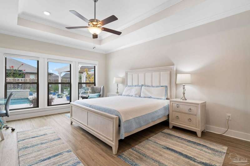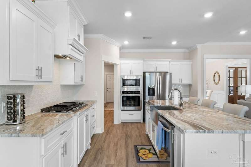 Welcome to Iron Rock and this beautiful 2,806 square foot, 4 Bedroom 3 bath home that features an inground saltwater pool, & back yard oasis! As you enter the home through the inviting 8' mahogany doors, you'll find the formal dining to the right, and the kitchen just beyond. The kitchen contains white cabinets, tiled backsplash, 36' gas cooktop, SS appliances, separate wall oven, large island and a breakfast area. The kitchen overlooks the great room, that contains a gas fireplace. These rooms over look the back yard and pool. The pool is gunite, complete with lights, water features, and has a pergola one end, and a covered gazebo on the opposite end. This is finished with stamped concrete decking. Beds 2 & 3 are on the left side of the home and share a full bath in the hallway. The primary suite is on the opposite side of the home for complete privacy, and contains a primary suite with dual vanities, granite tops, garden tub, separate tiled shower, large walk in closet, & water closet. As you continue down the hallway towards the garage, there is a large walk in pantry (off the kitchen), a laundry room with a tub, and this leads to the stairwell. The 2nd floor contains a full bath, and bedroom 4, which is large enough to make a second great room, or a flex room etc. Additional highlights include EVP flooring in all the main areas and primary suite, crown molding, judges paneling, and tankless gas water heater. This home is located on a very desirable lot on a cul-de-sac. Iron Rock is a neighborhood with fantastic amenities, including a resort-style swimming pool, dog park, pickleball courts, and a half basketball court. This home is close proximity to the neighborhood clubhouse, pool, and playground to make this home even more appealing. Iron Rock is located less than 5 miles to the Interstate and the Navy Federal Main Campus, 3 miles to the nearest grocery store and dining choices makes this neighborhood a desirable location to call home!