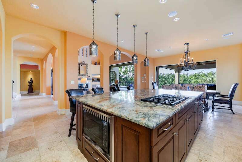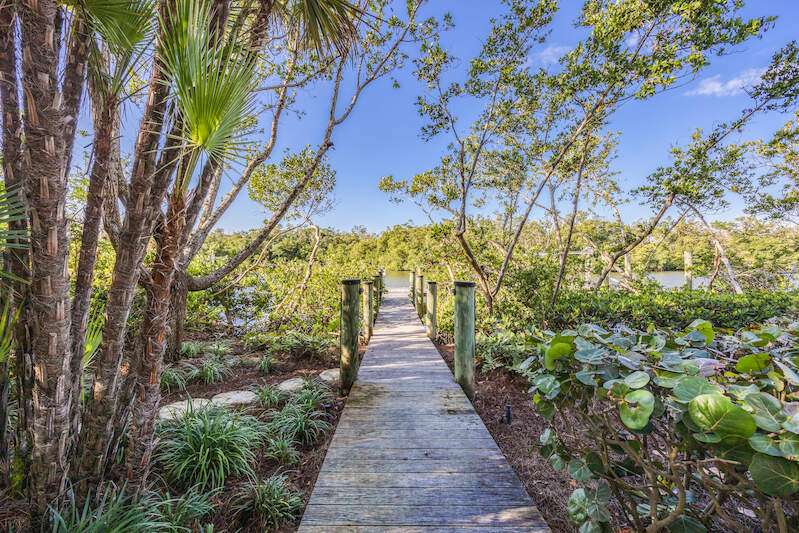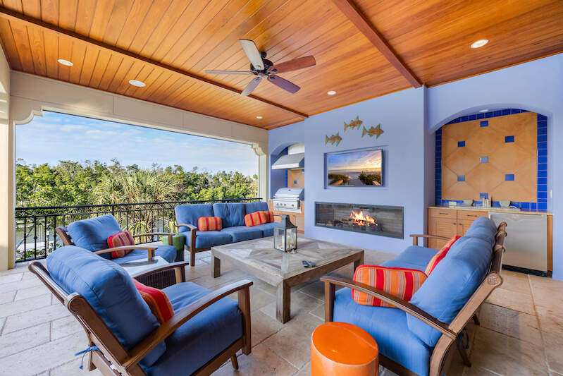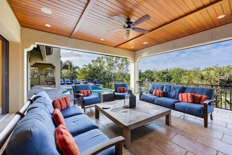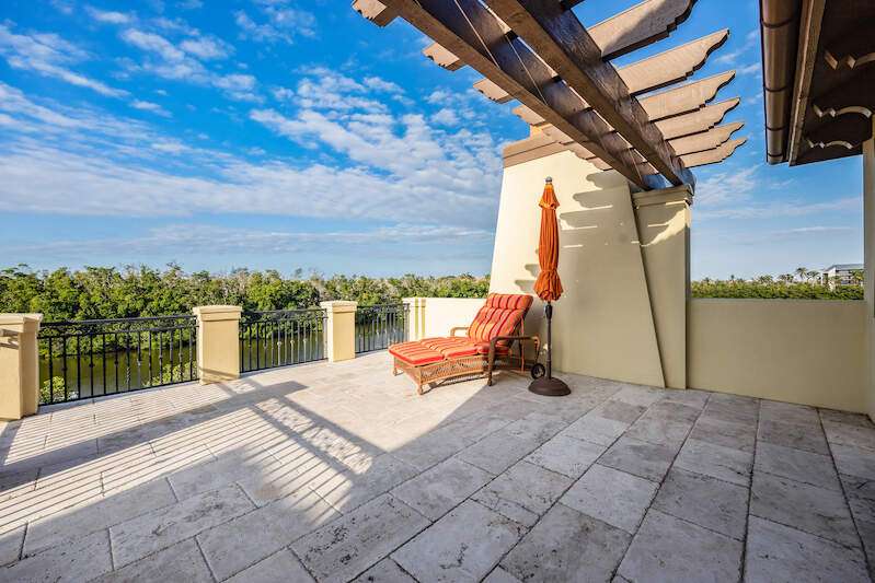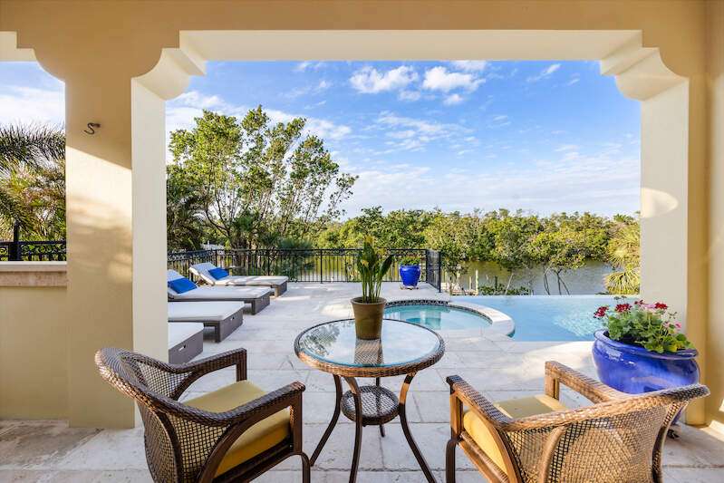 Experience Southwest Florida living at its finest. This meticulously maintained home was constructed with an eye to quality and attention to detail. Enjoy both the benefits of a friendly neighborhood as well as the feeling that your are living in a private nature preserve. Ideally situated, every room has a view of the water where you can see fish jumping, herons and egrets fishing, osprey nesting and dolphins swimming. The built to last IPE wood dock has 2slips with a kayak lift for easy access to the famed Calusa Blueway kayak trail. 2 routes to the gulf are easily accessible. Either bring your own boat or rent one minutes away.The amazing lanai features disappearing screens and storm shutters, a brand new grill, a woodburing fireplace, an outdoor rated TV, and a beverage refrigerator. Open up the fully retractable sliding glass doors to create an expansive indoor/outdoor space with a living level infinity edge pool and spa. Relaxed elegance is epitomized with the beautiful hand-curated Italian and Mexican tile accents throughout. The house is fully ADA accessible with a 3 story elevator. The expansive kitchen is a chef's dream, featuring top of the line Miele and Wolf appliances, a beautiful oversized granite island, a butler's pantry, wine refrigerator, 2 idshwashers and a warming drawer. The cosy office/den provides a quiet workspace and intimate lounge area for evening relaxation. All bedrooms have private balconies and spacious en suite bathrooms with an additional secluded outdoor shower off the primary bath. This property has two 3 car garages with plenty of space for your outdoor toys and a fully tiled lower level. And so much more! 10 minute walt to the beach & restaurants, brick driveway, lovely landscaping, outdoor pool bath, beautiful wrought iron railings, 2 story living room with wood burning fireplace, sonos sounds system with integrated speakers 8 Cable TV connections, Integrated pest control system, wood beamed ceilings, large 3rd floor deck, Travertine and hardwood floors, New HVAC system and whole house dehumidifier, Separate trash room, generator, friendly, gated community. From the quiet sunrises to the gorgeous sunsets, this is a home to fall in love with.
